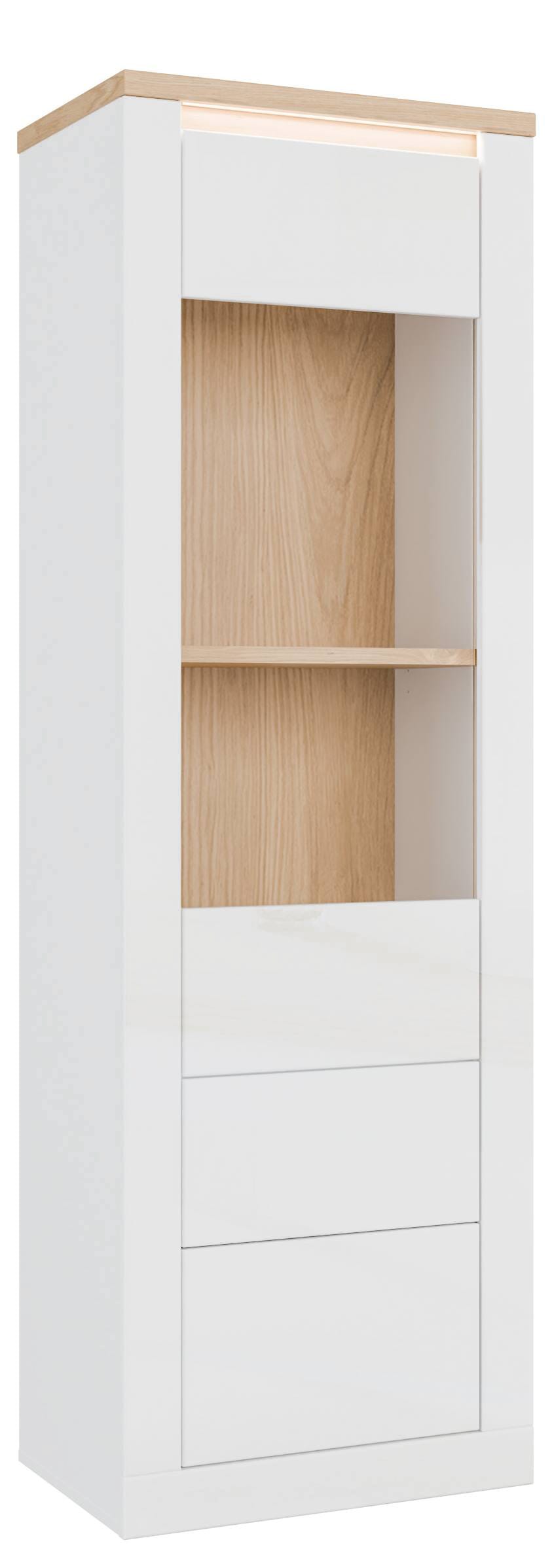 Vitrine DURAOAK 1-trg. Weiß glänzend / Wildeiche Dekor von Forte