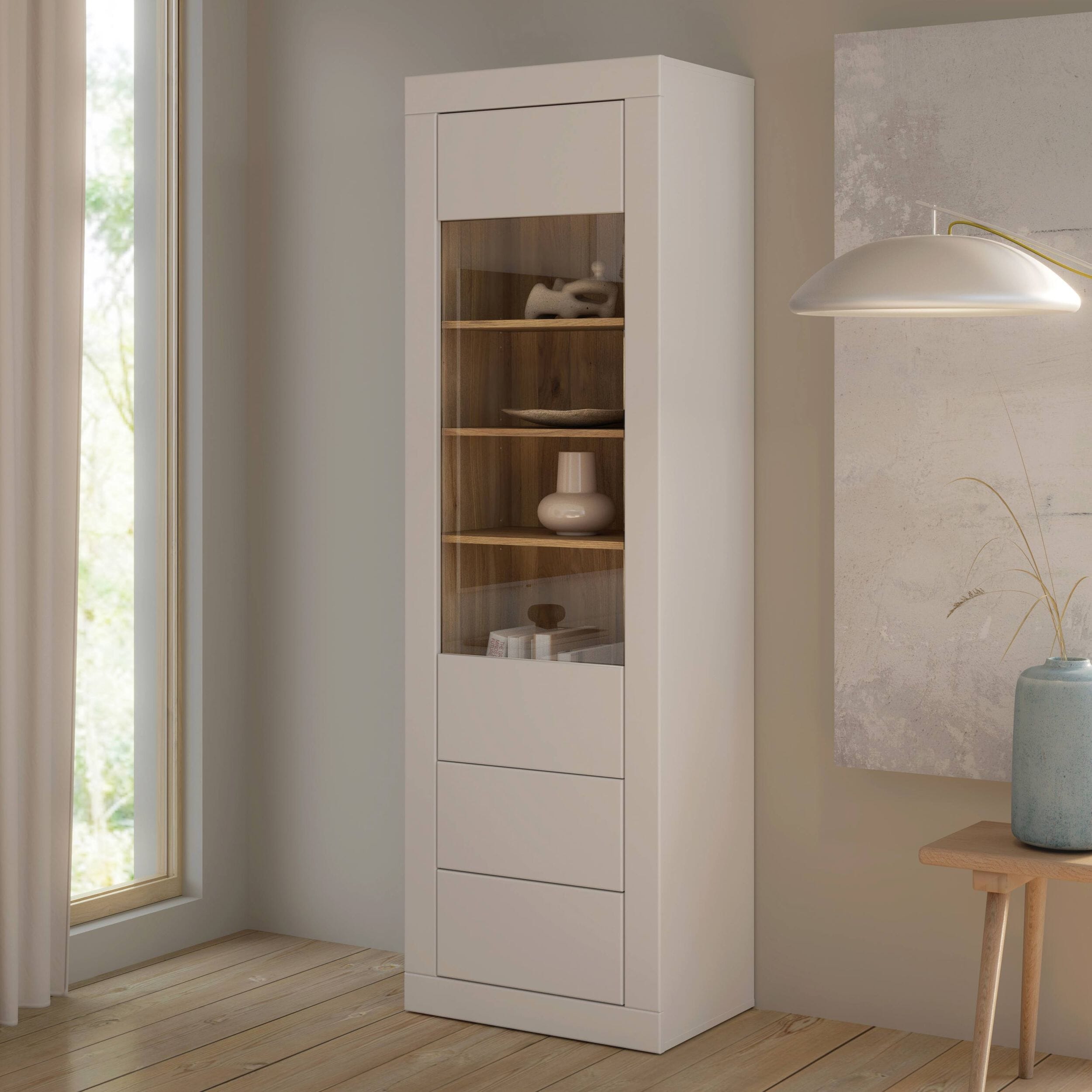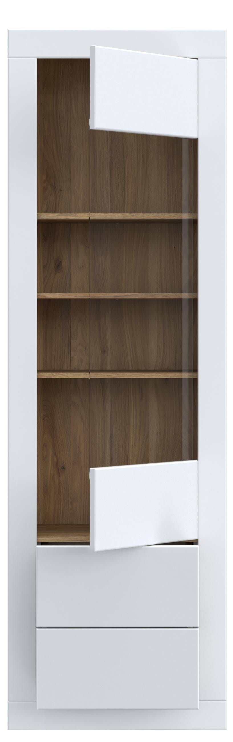 Vitrine LEFKADAS Weiß seidenmatt 1 Tür 2 Schubladen, von Forte