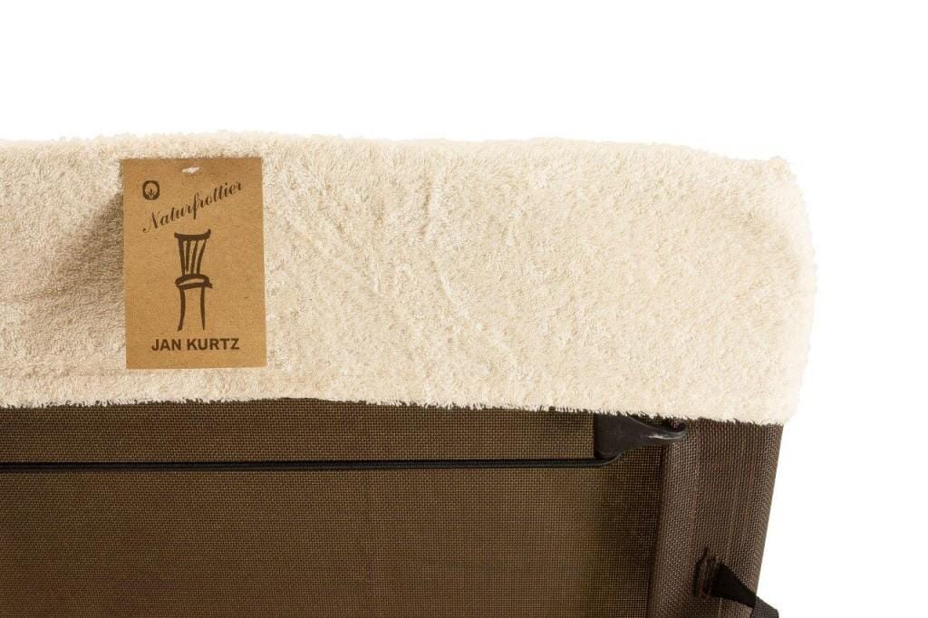 Die Frottier-Auflagen von Jan Kurtz passen optimal zur Aluminium-Dreibeinliege Amigo BIG und XXL.
