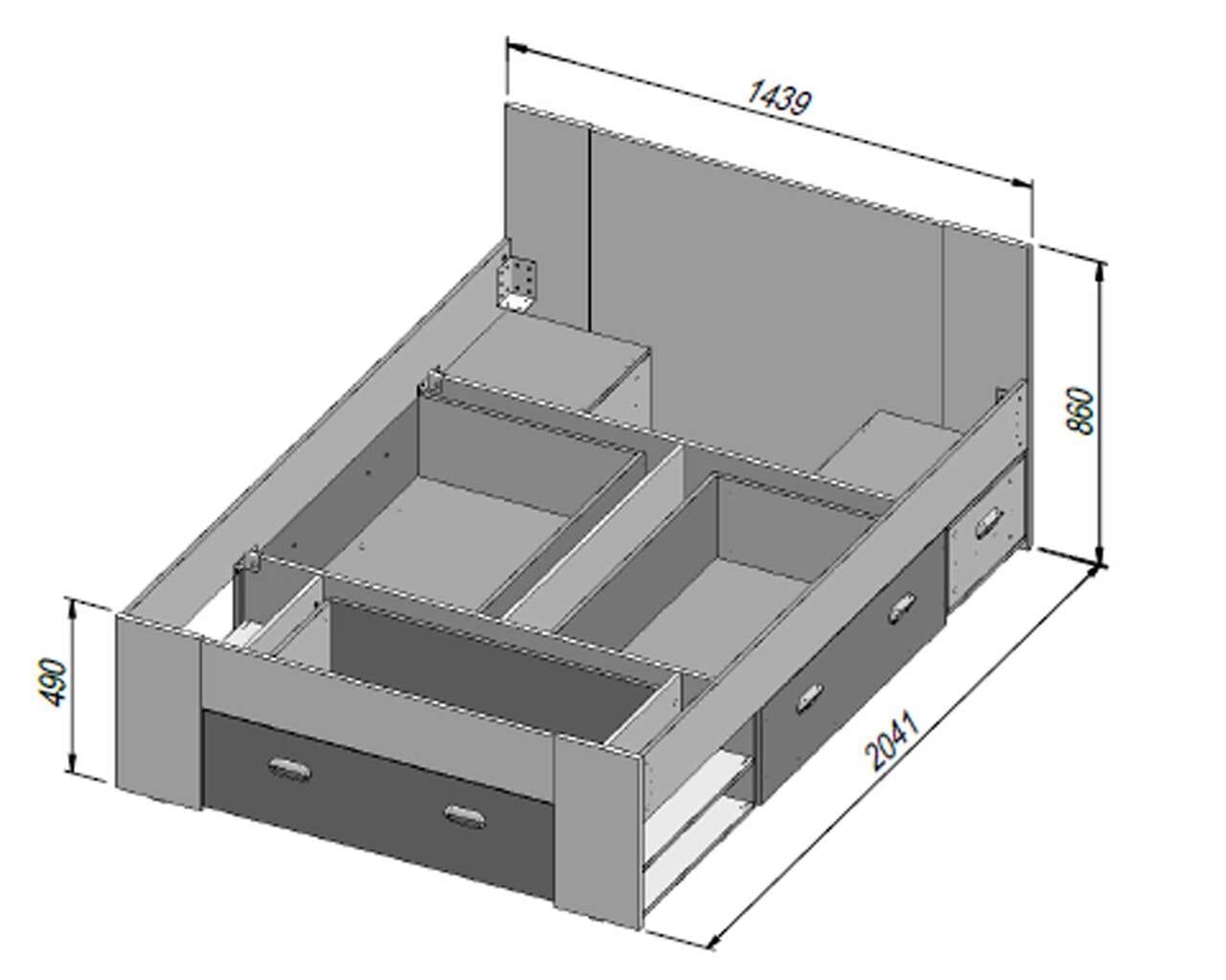 - 1 Schublade am Fußende, Innenmaße B/H/T ca. 100 x 25 x 39 cm