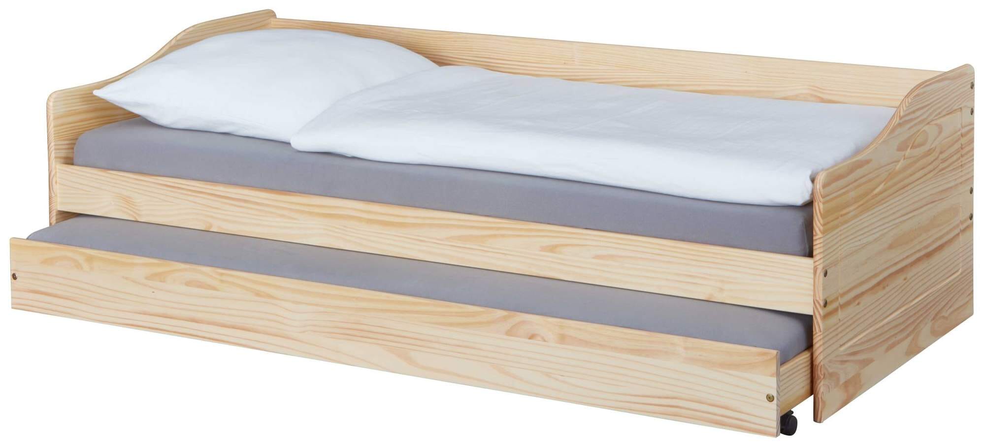Nicht nur in einem Jugendzimmer ist das Funktionsbett LEONIE 23 Kiefer natur einfach ideal. Es wirkt auf den ersten Blick recht schlicht, aber es ist mehr als nur ein Bett. Tatsächlich bekommen Sie zwei Betten mit diesem überaus funktionelle Design. Denn unter der 90 x 200 cm messenden Liegefläche befindet sich ein zweites Bett. Wenn Sie das wollen.