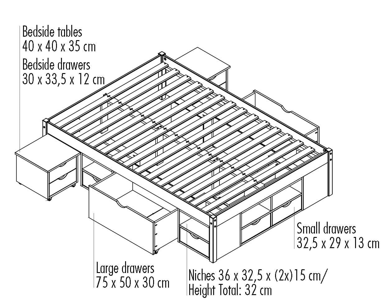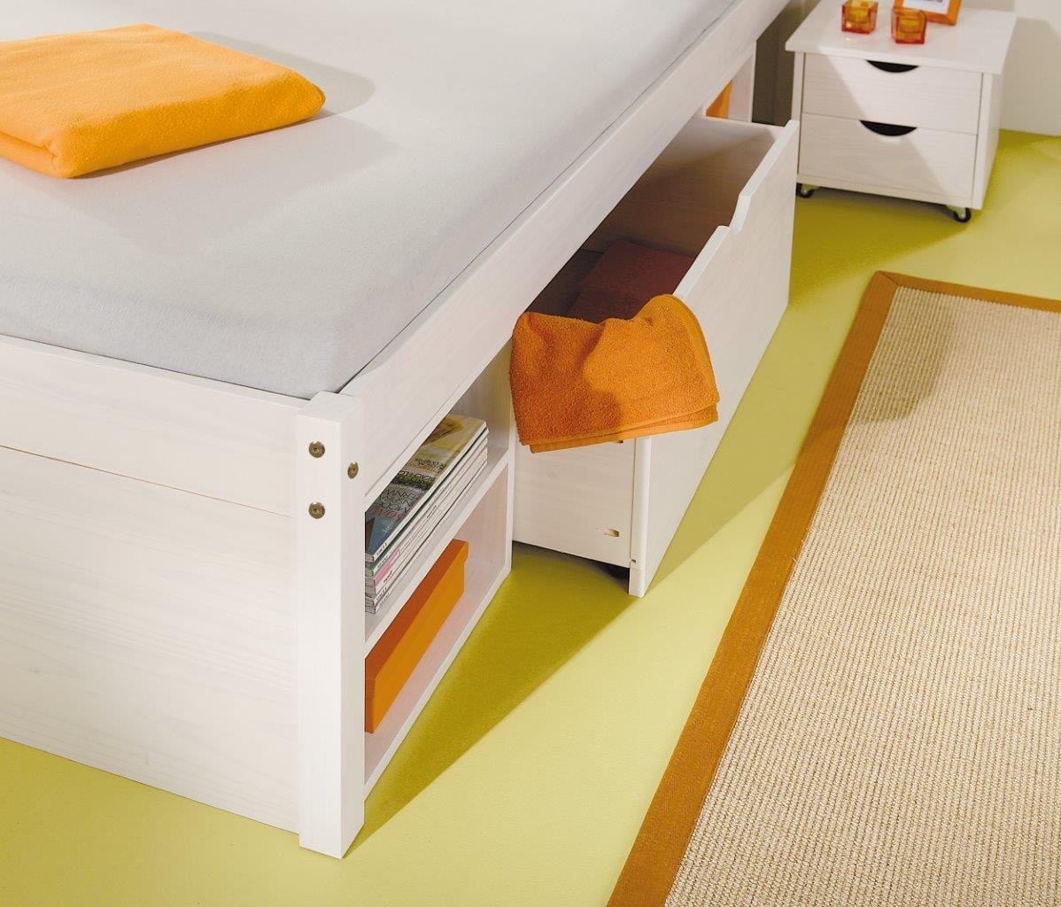Durchdachtes Schubladenbett mit praktischem Ordnungssystem