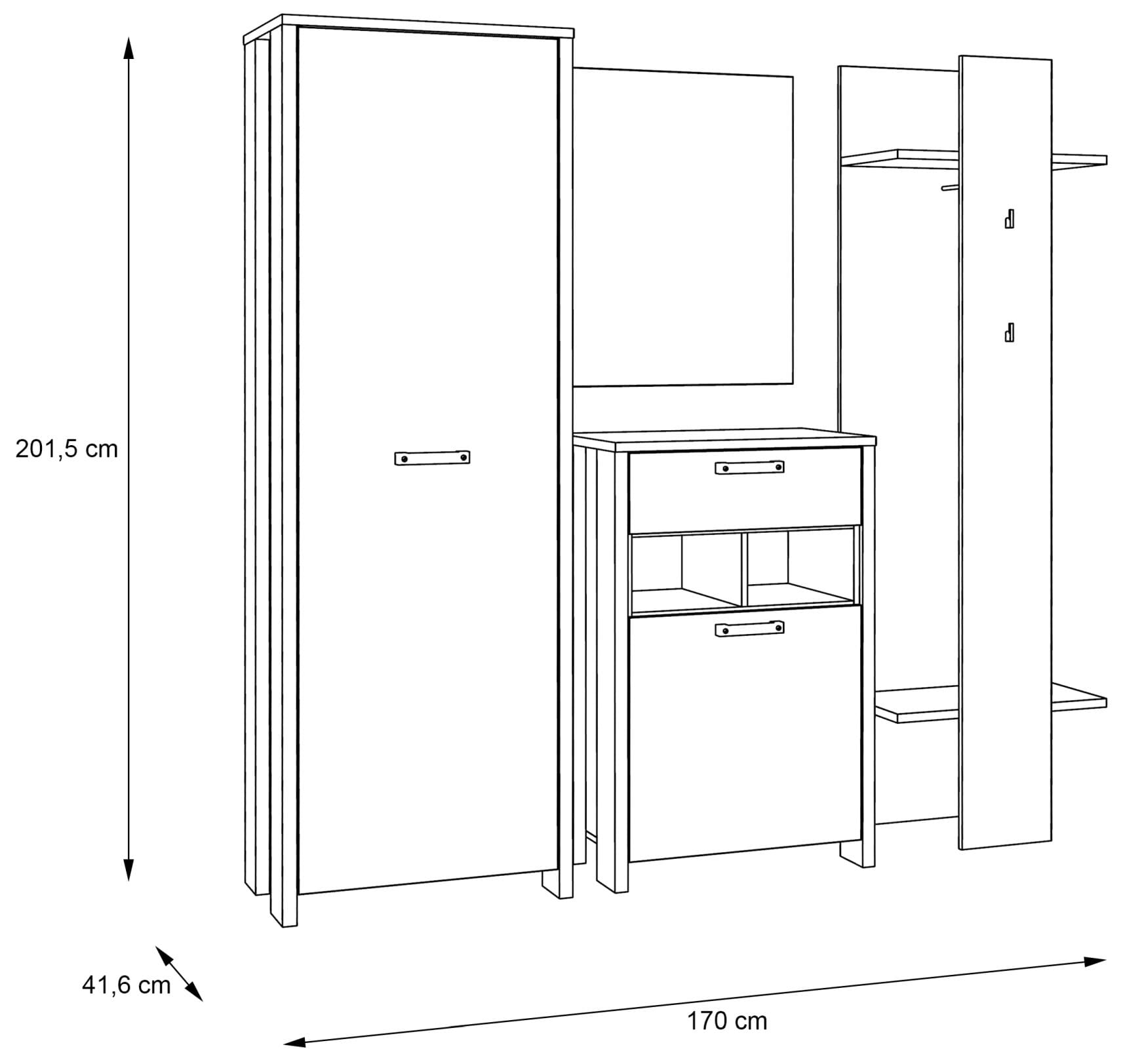 - Garderobenpaneel: mit 2 Ablagen und 2 Haken, 60 x 200,5 x 34,5 cm