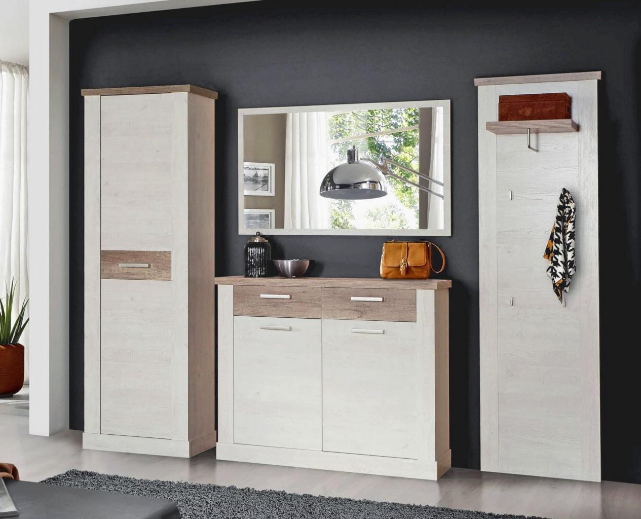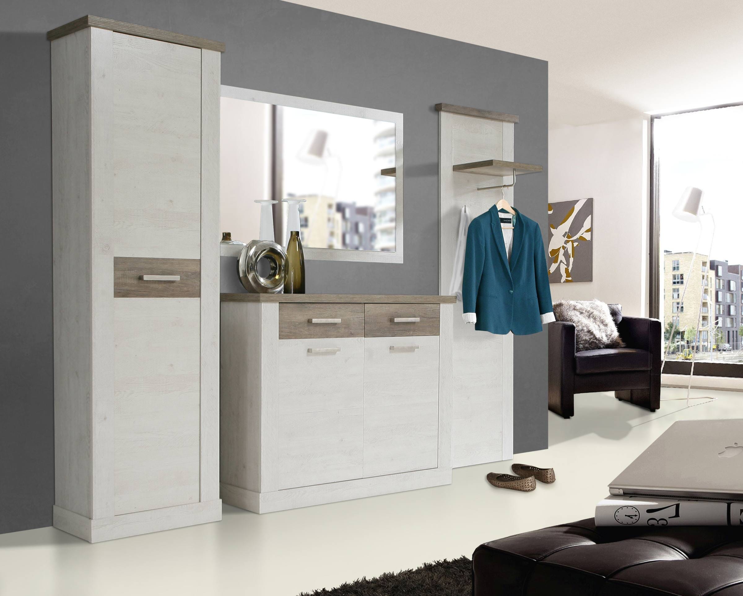 Garderobe DURO 4-tlg. Komplett-Set, Pinie weiß Absetzungen Eiche Antik