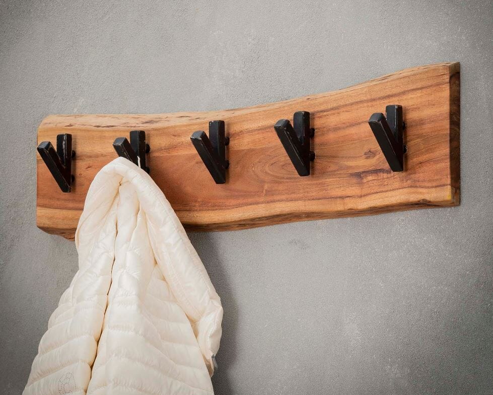 Garderobe Hakenleiste KANT mit 5 Haken Akazie massiv mit Baumkante