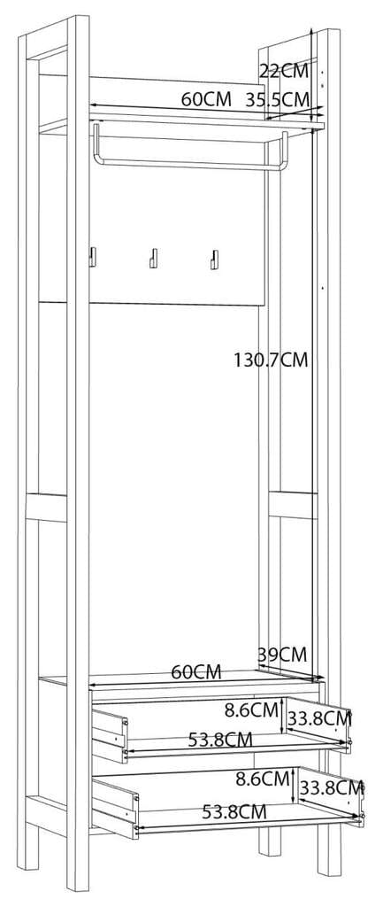 Garderobe HOYVIK, 2 Schubladen, Sonoma Eiche mit Weiß