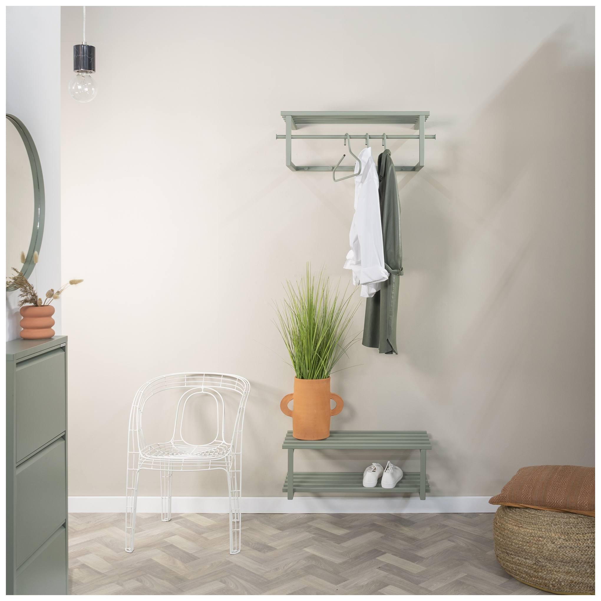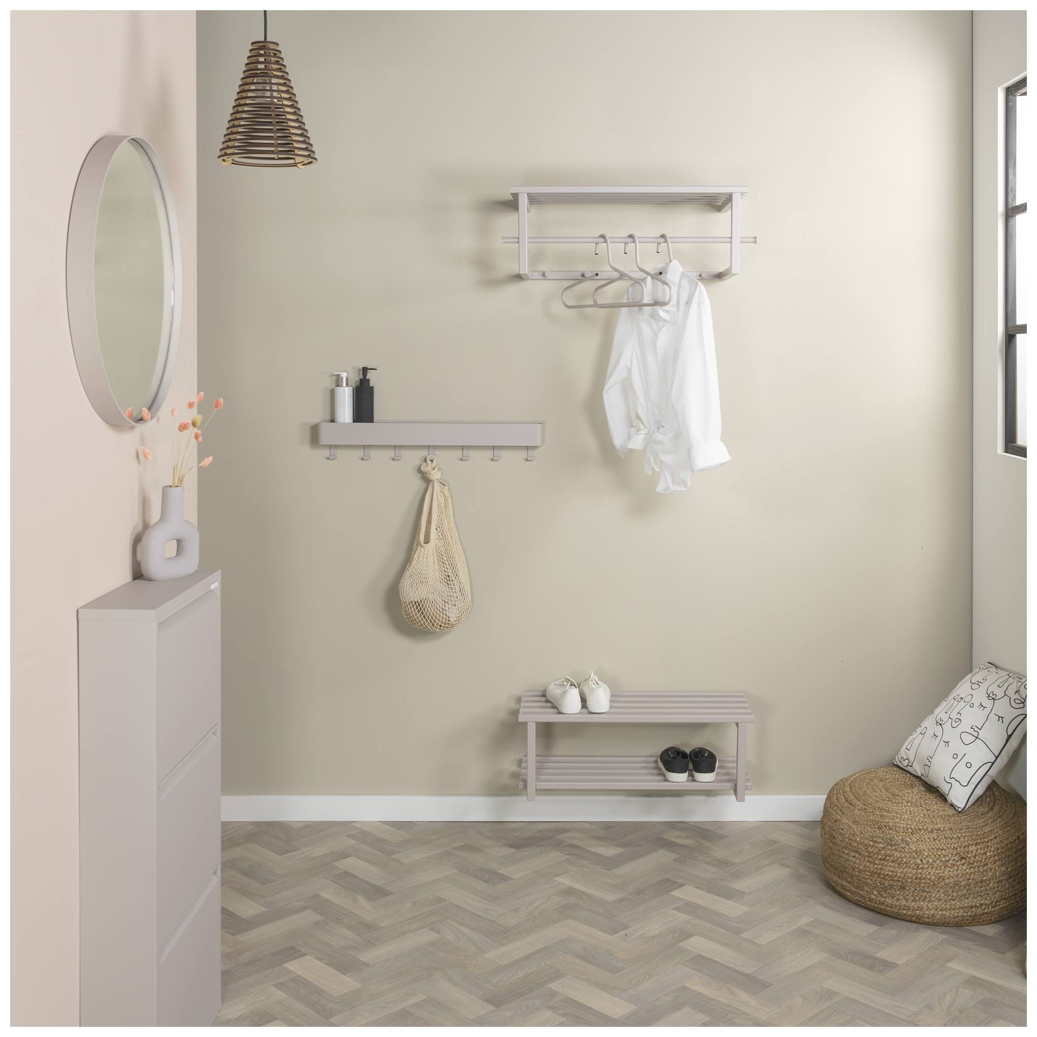 Mit ihren kompakten Maßen und den vielen verschiedenen Unterbringungsmöglichkeiten ist die Wandgarderobe Marco das ideale Accessoire für schmale Flure und Eingangsbereiche. Dabei braucht sich der praktische Kleiderhalter nun wahrlich nicht zu verstecken: Das pulverbeschichtete Stahlrohr zusammen mit kantigen Stäben der Hutablage ergänzen sich zu einem modernen Hingucker, der vor allem in modernen Einrichtungsstilen perfekt zur Geltung kommt. Wählen Sie den Farbton: Clay Terra, Dusty Green oder Silky Taupe. Welche Farbe passt zu Ihnen?