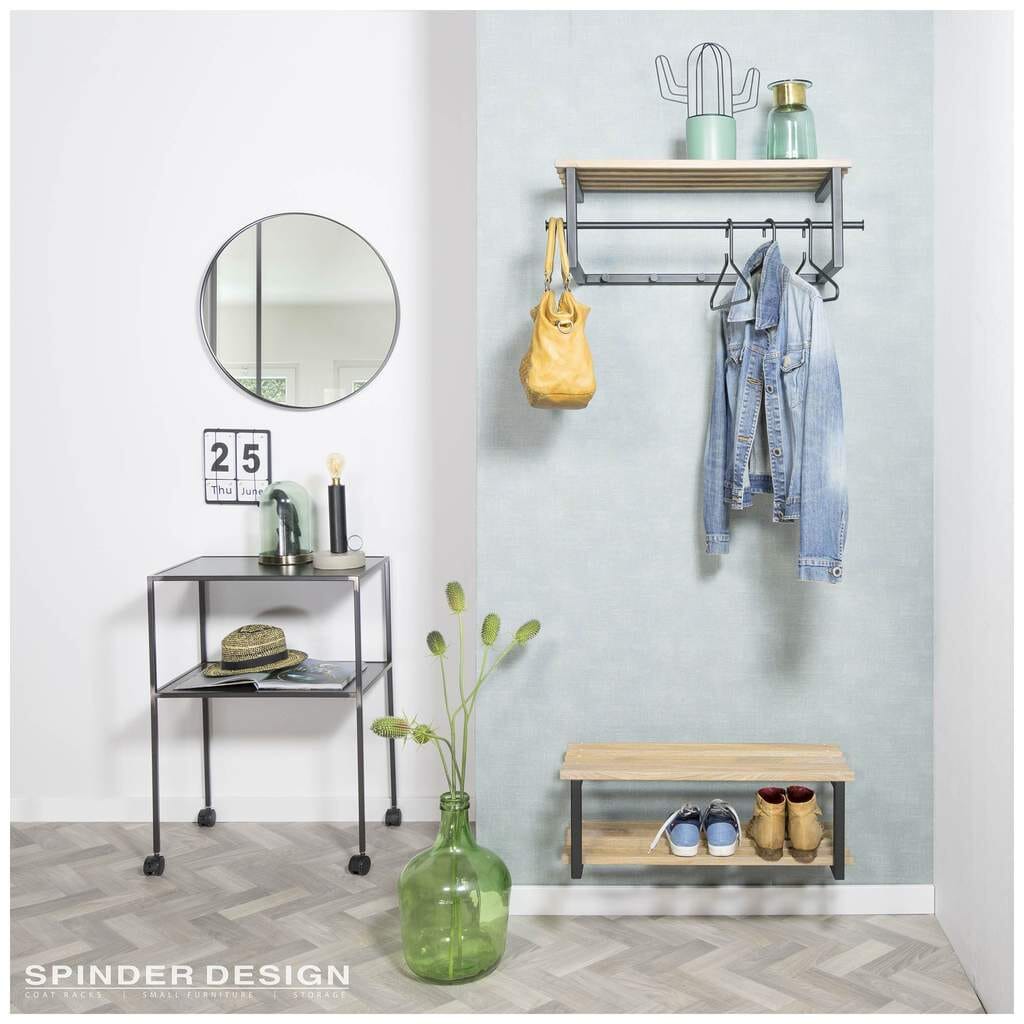 Die vielseitig einsetzbare Garderobe aus dem Hause Spinder wird aus Metall gefertigt und ist mit behandelten Oberflächen versehen. Fünf Kleiderhaken und zwei seitliche Haken bieten ausreichend Platz für Jacken und Mäntel.