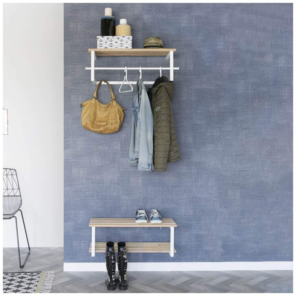 Mit ihren kompakten Maßen und den vielen verschiedenen Unterbringungsmöglichkeiten ist die Wandgarderobe Marco das ideale Accessoire für schmale Flure und Eingangsbereiche. Dabei braucht sich der praktische Kleiderhalter nun wahrlich nicht zu verstecken: Das pulverbeschichtete weiße Stahlrohr zusammen mit den Stäben aus Eichenholz ergänzen sich zu einem modernen industriellen Charme, der vor allem in modernen Einrichtungsstilen perfekt zur Geltung kommt.