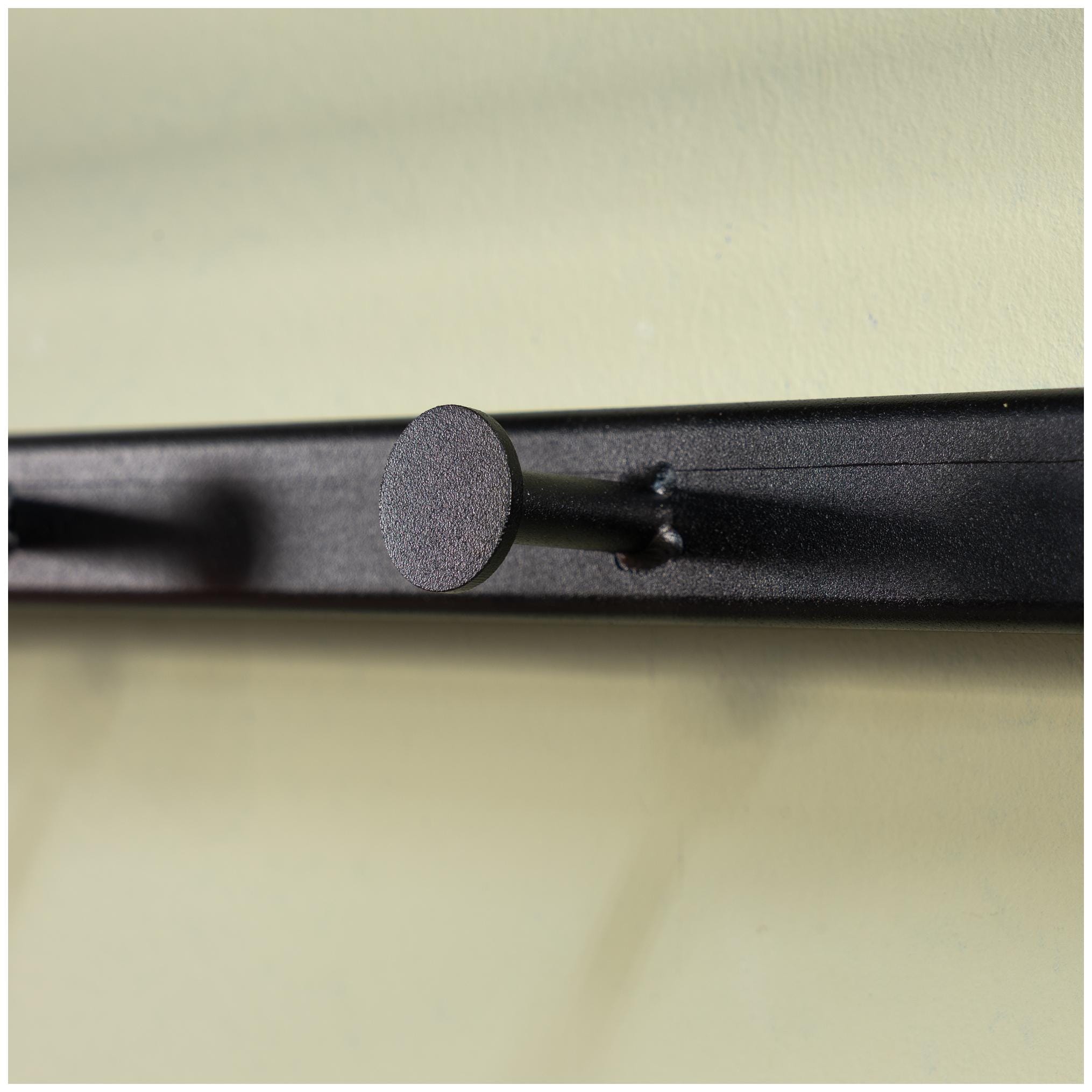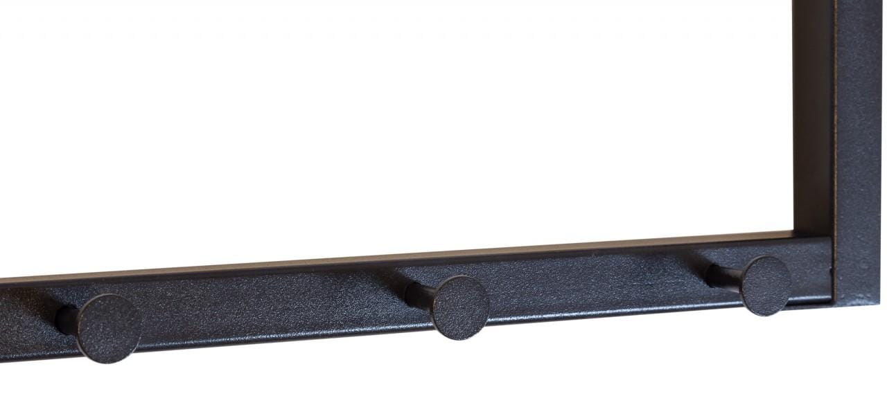 An zehn runden Kleiderhaken auf zwei verschiedenen Höhen finden leichte Jacken, handliche Schirme oder kleine Taschen Platz. Die nach vorne versetzt angebrachte runde Kleiderstange lässt sich mit Bügeln Ihrer Wahl bestücken und dient dann zur eleganten Unterbringung weiterer Mäntel und Jacken.