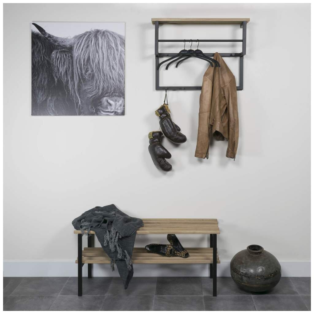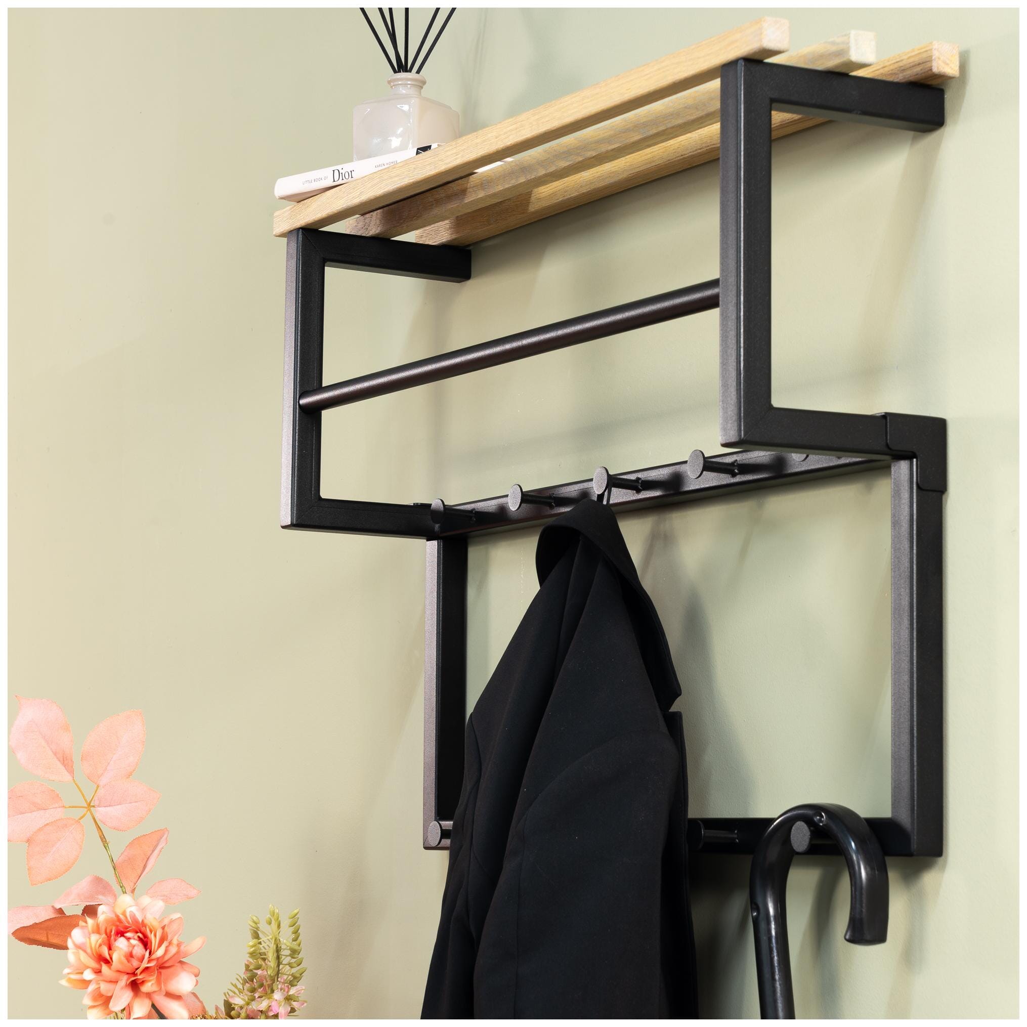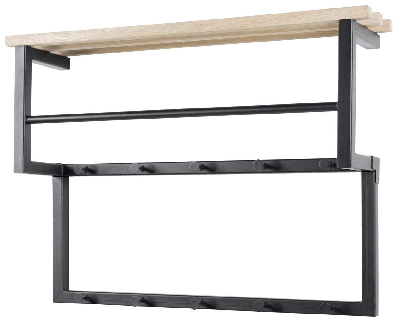Mit dem kantigen Gestell aus schwarzem, beschichteten Stahlrohr ist Rizzoli wie gemacht für das trendige Büro-Loft oder die moderne Wohnung im Industrial-Stil. Ebenso kernig in der Optik wirken die hellen Holzstäbe, die als Hutablage genauso gut geeignet sind wie zur Dekoration mit Pflanzen, Bildern oder Wohn-Accessoires.