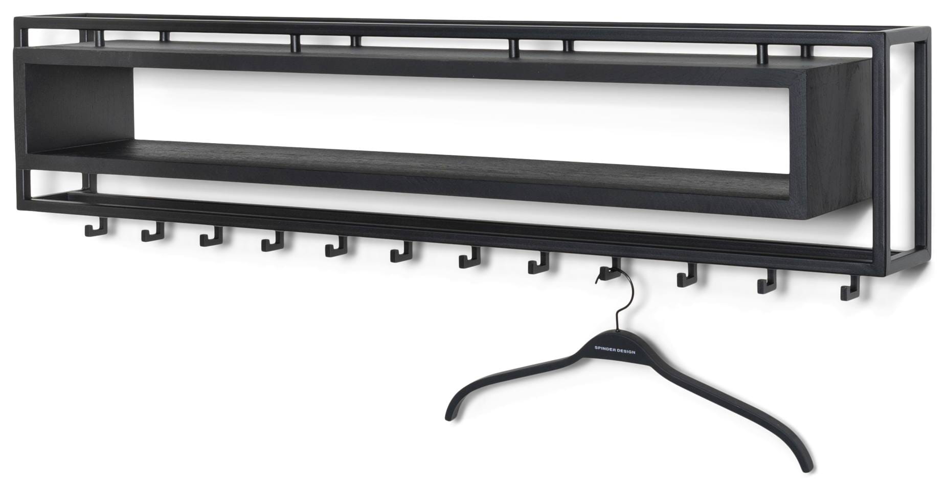 Die Wandgraderobe School 120 von Spinder begeistert durch ihr einzigartiges Design. Stahlrohr? Ja. Holz? Ja. Aber alles in Schwarz? Auch ja.