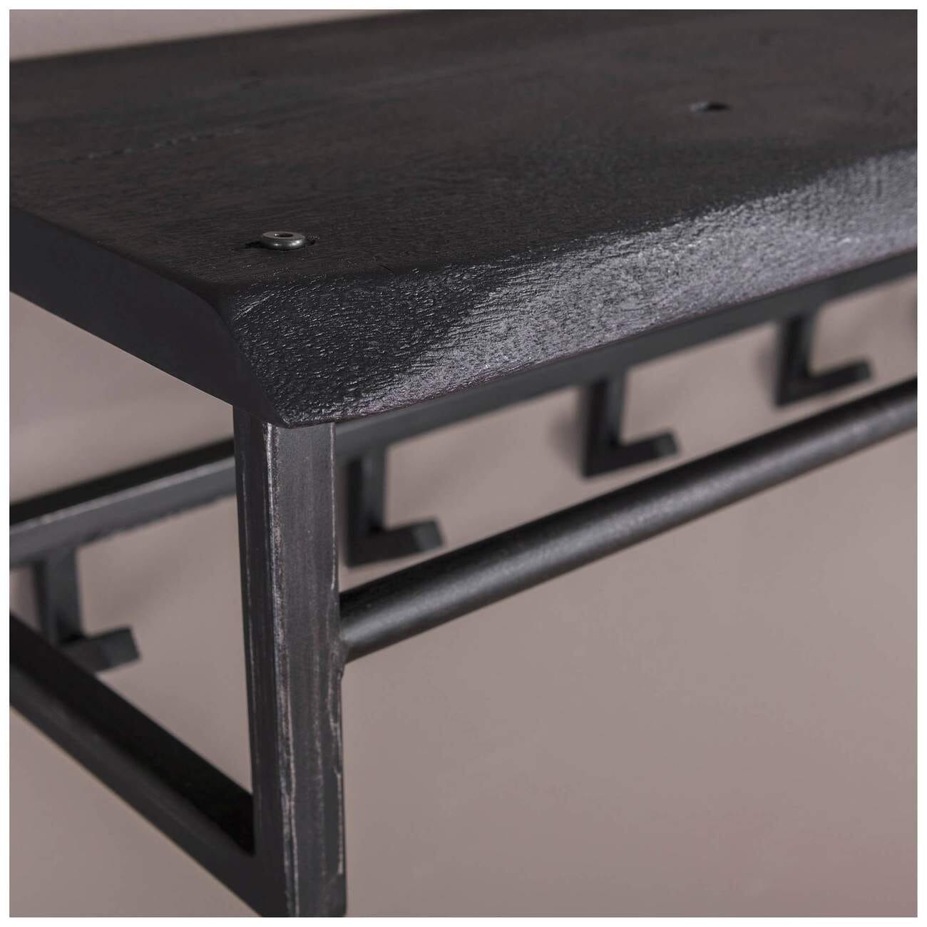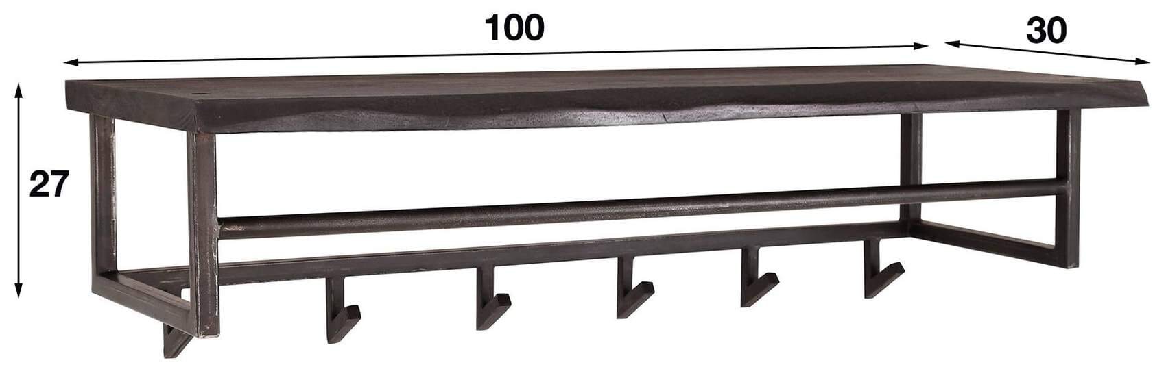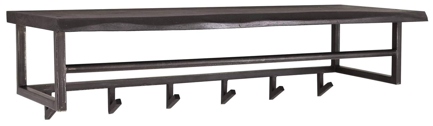 Garderobe Wandgarderobe YUKON 6 Haken Hutablage Stahl Akazie Schwarz