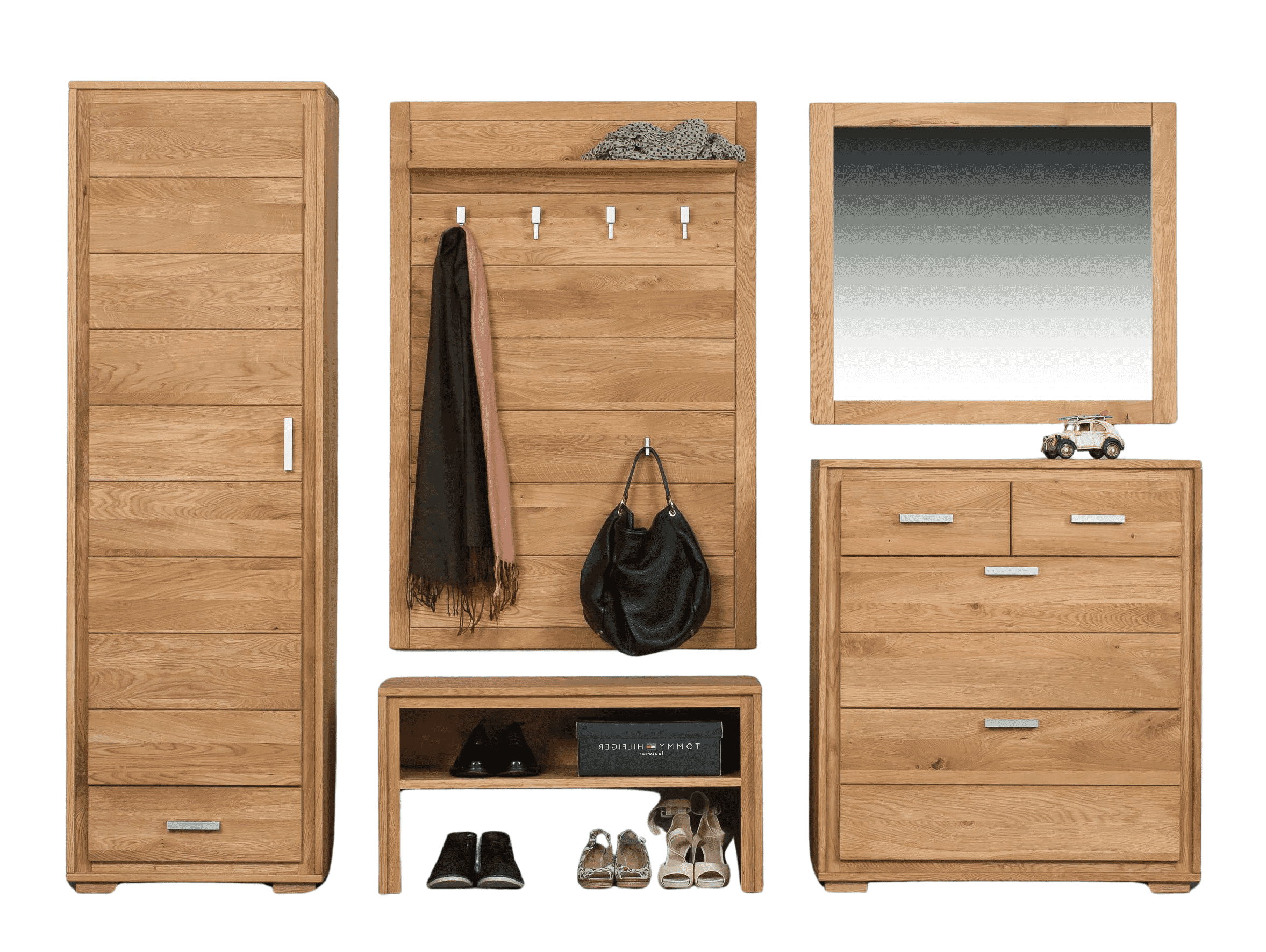 Artikel-Nr.: 46847Tolles 5-teiliges Massivholz Garderoben Set Basel bestehend aus: