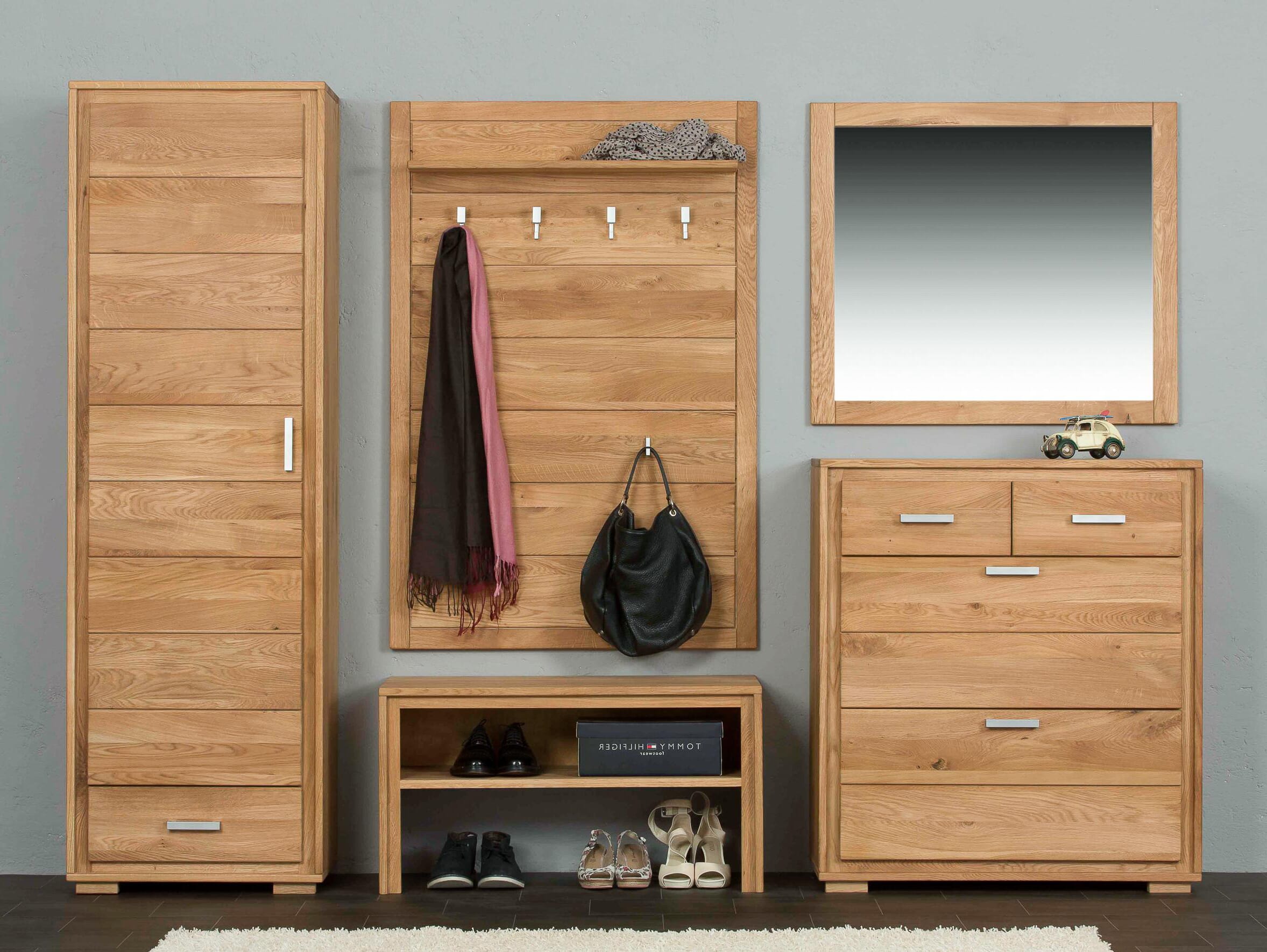 Garderoben Set Basel I-L Wildeiche Massivholz geölt 5-teilig