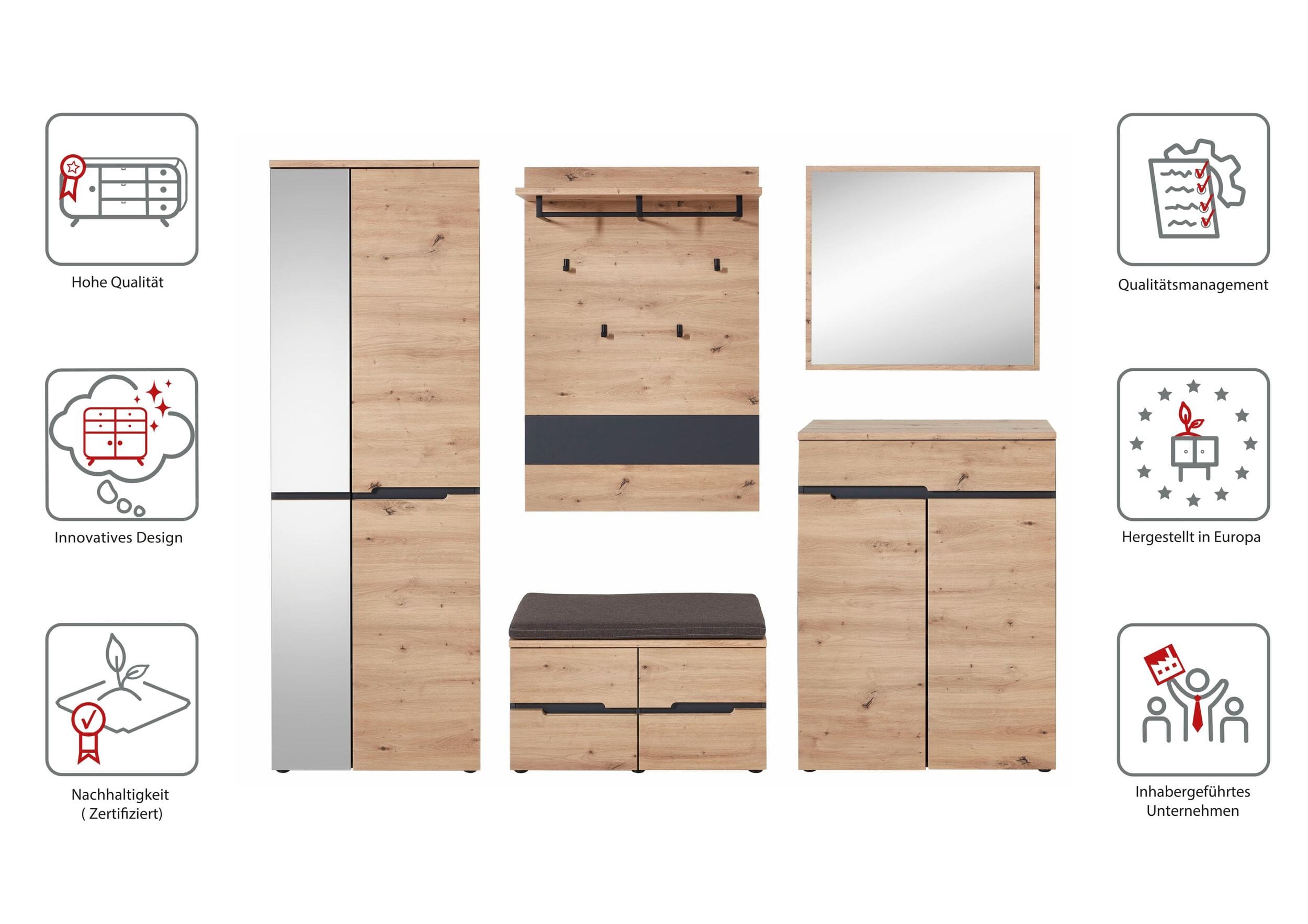 Modernes Garderobenset Memphis GH80 Artisan Eiche mit Graphit Nachbildung 5-teilig