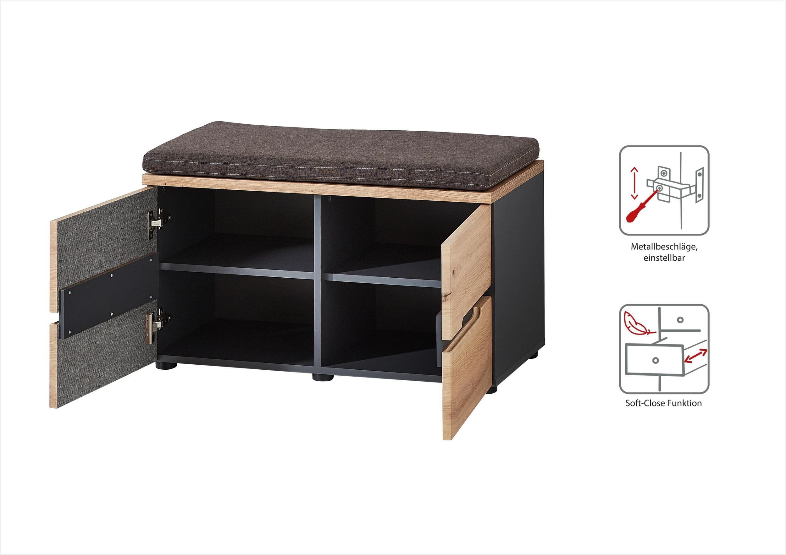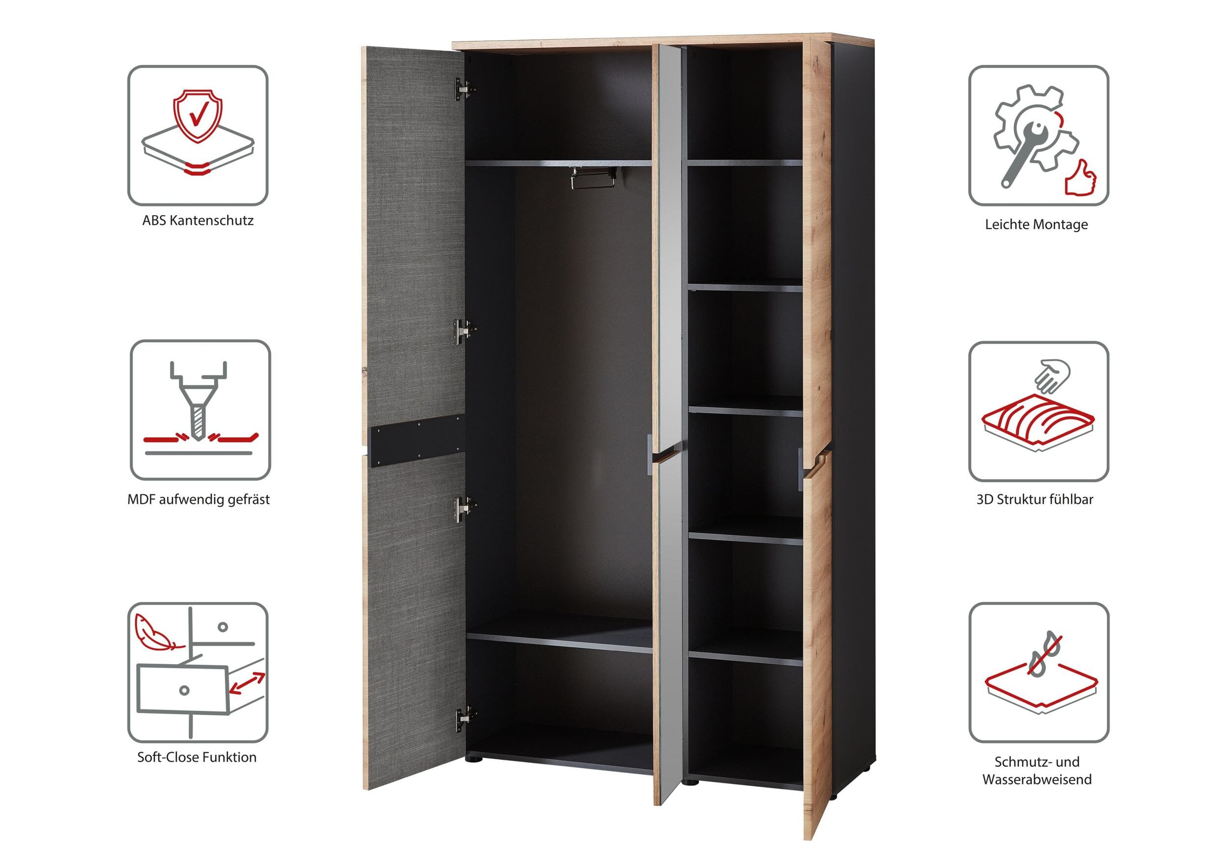 Modernes Garderobenset Memphis GH81 Artisan Eiche mit Graphit Nachbildung 5-teilig