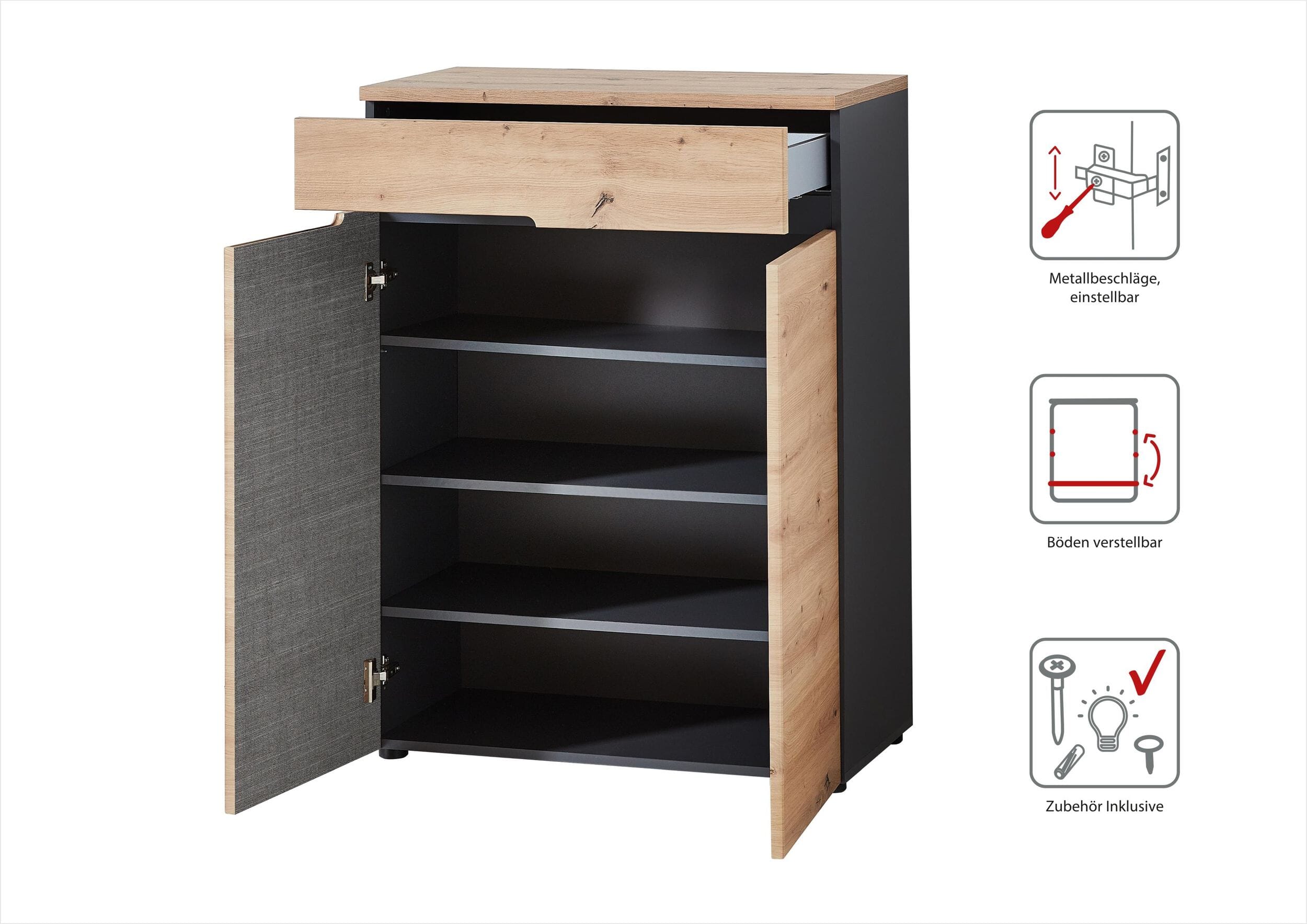 Das Garderoben-Set MEMPHIS-GH81 von Innostyle ist die perfekte Wahl, um deinen Eingangsbereich modern und stilvoll zu gestalten. Mit seiner geschmackvollen Farbkombination aus Artisan Eiche Optik und Graphit schafft das Set eine wohnliche Atmosphäre und setzt zugleich Akzente.