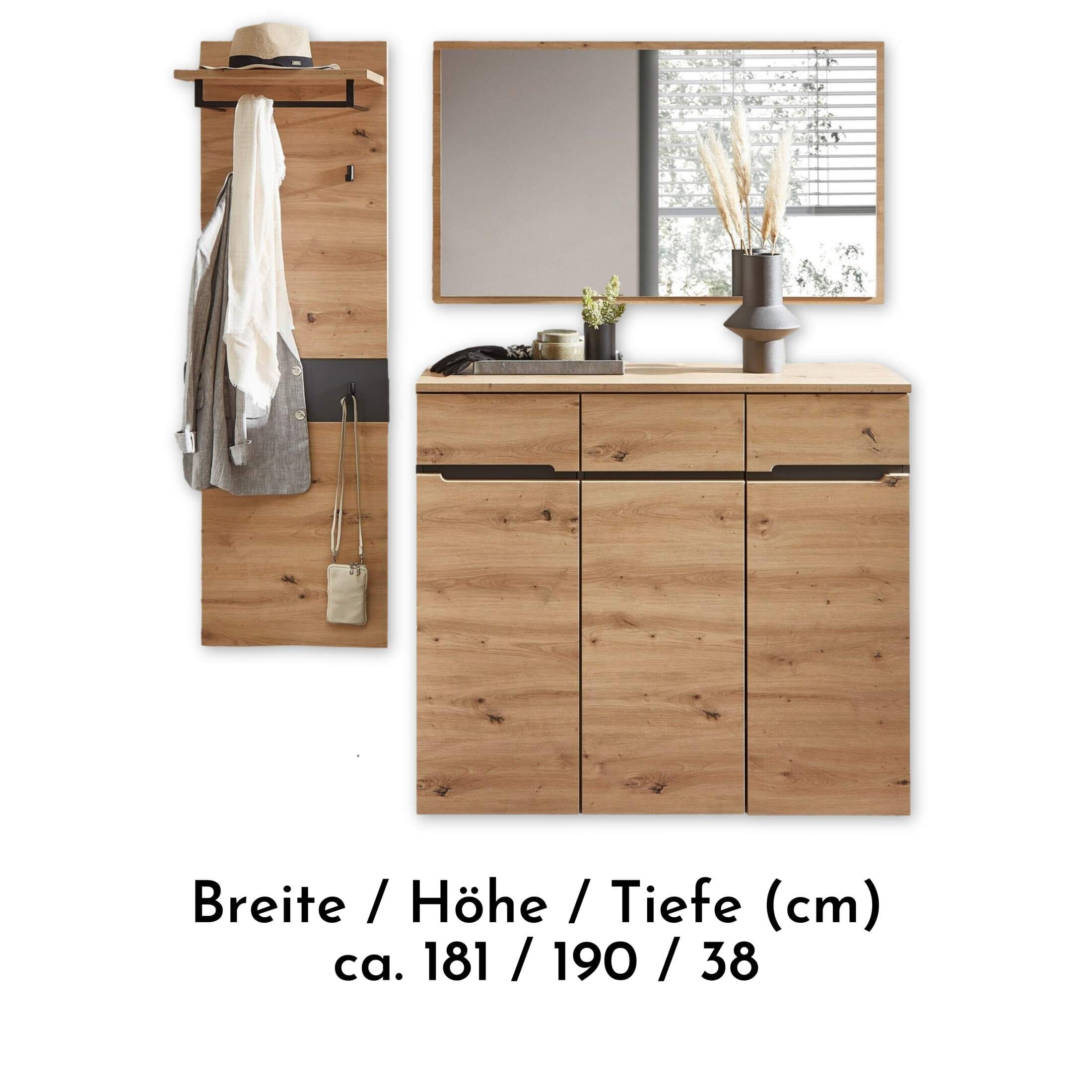 Modernes Garderobenset Memphis GH82 Artisan Eiche mit Graphit Nachbildung 3-teilig