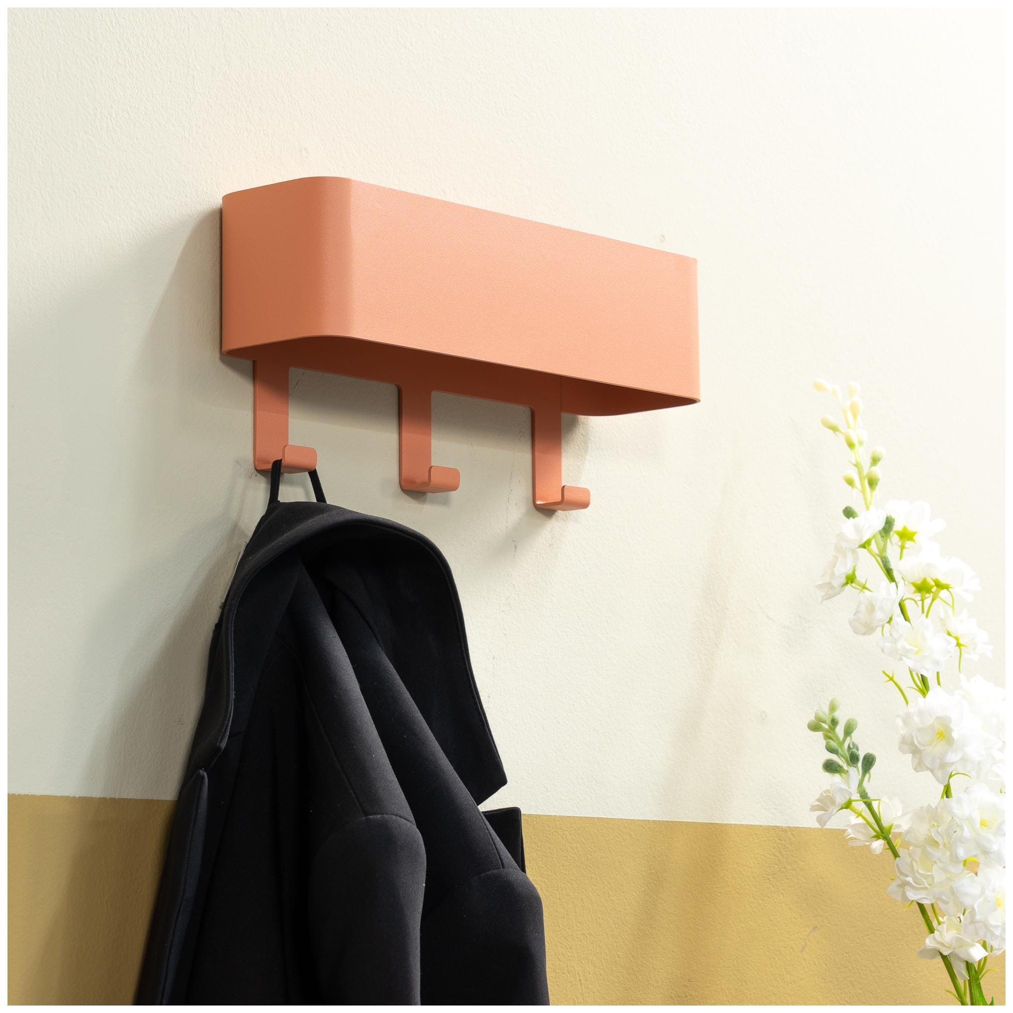 Die im Farbton Clay Terra pulverbeschichtete Hakenleiste zeichnet sich aus durch ein Design aus, das kompakt und durch die interessante Form der Haken elegant wirkt. Bringen Sie die praktische Garderobe Hakenleiste DAX PLAY 3 dort an, wo Sie eine Möglichkeit zum Aufhängen von Kleidung benötigen. Das kann nicht nur im Flur der Fall sein, sondern auch im Schlafzimmer, im begehbaren Kleiderschrank oder im Bad. Die schlichte und platzsparende Hakenleiste im modernen, fast minimalistischem Design, lässt sich überall gut einfügen. Sie ist durch die Pulverbeschichtung robust und strapazierfähig.