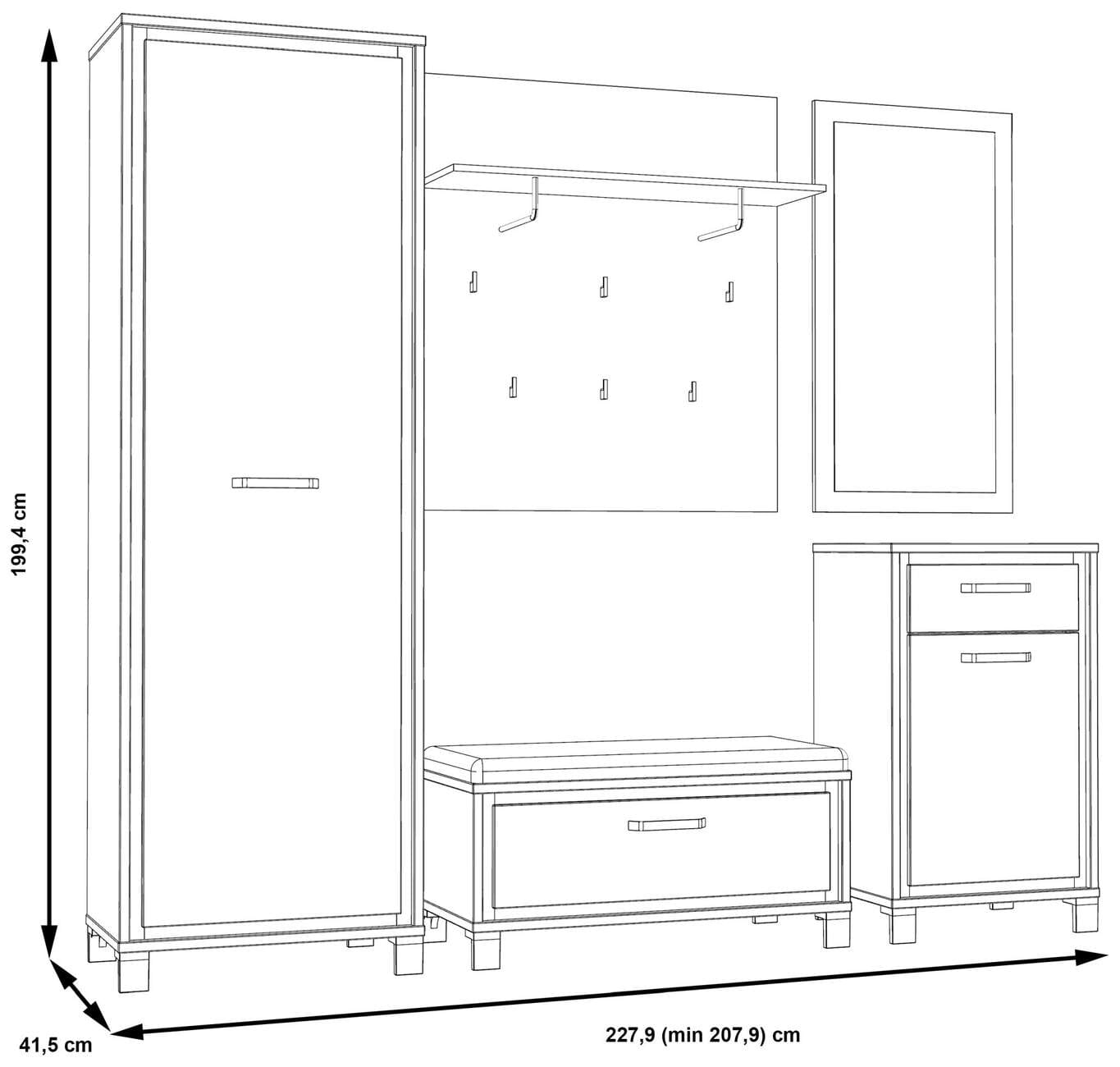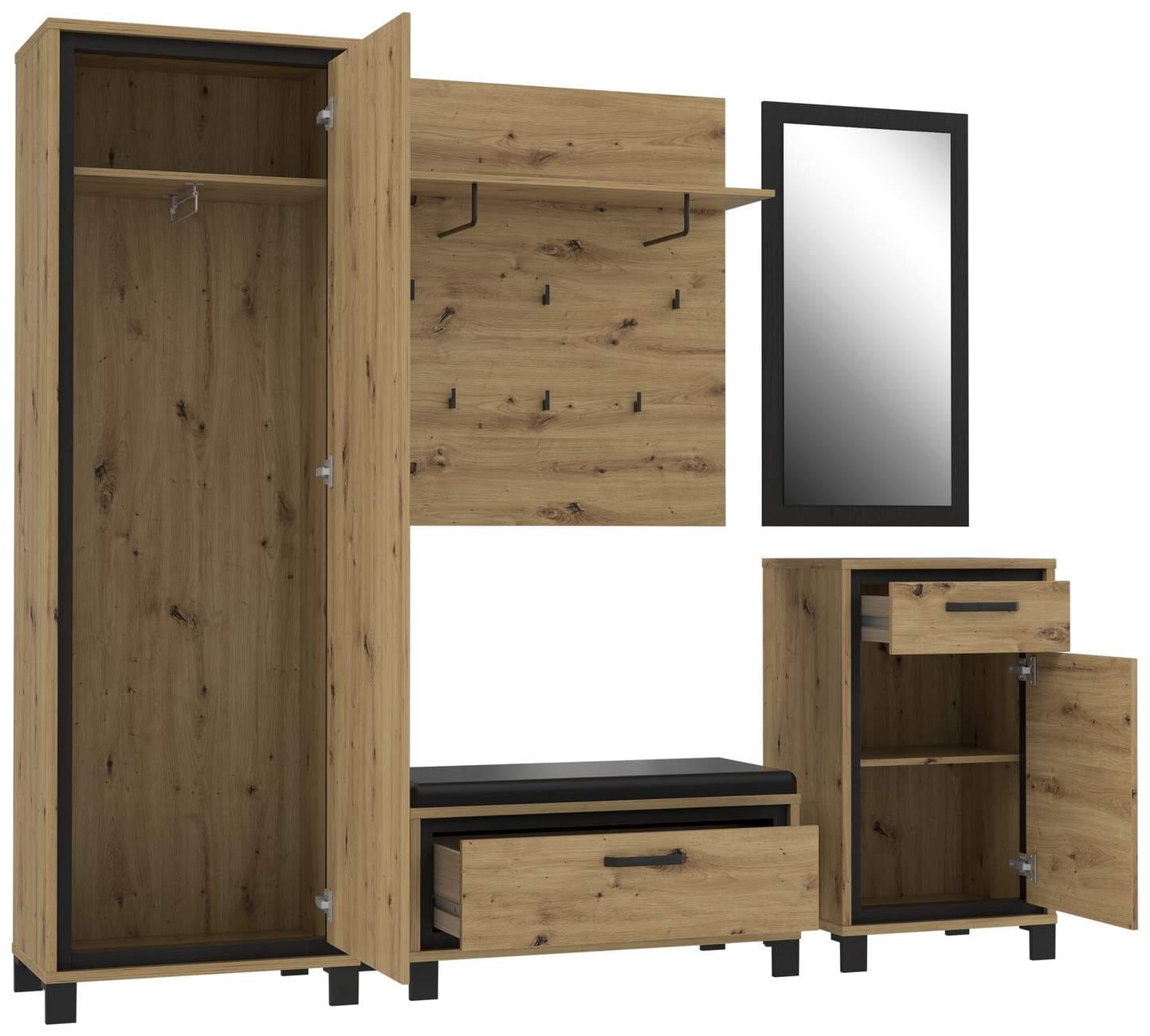 Garderobenset TRONDHEIM in Artisan Eiche / Schwarzeiche Optik