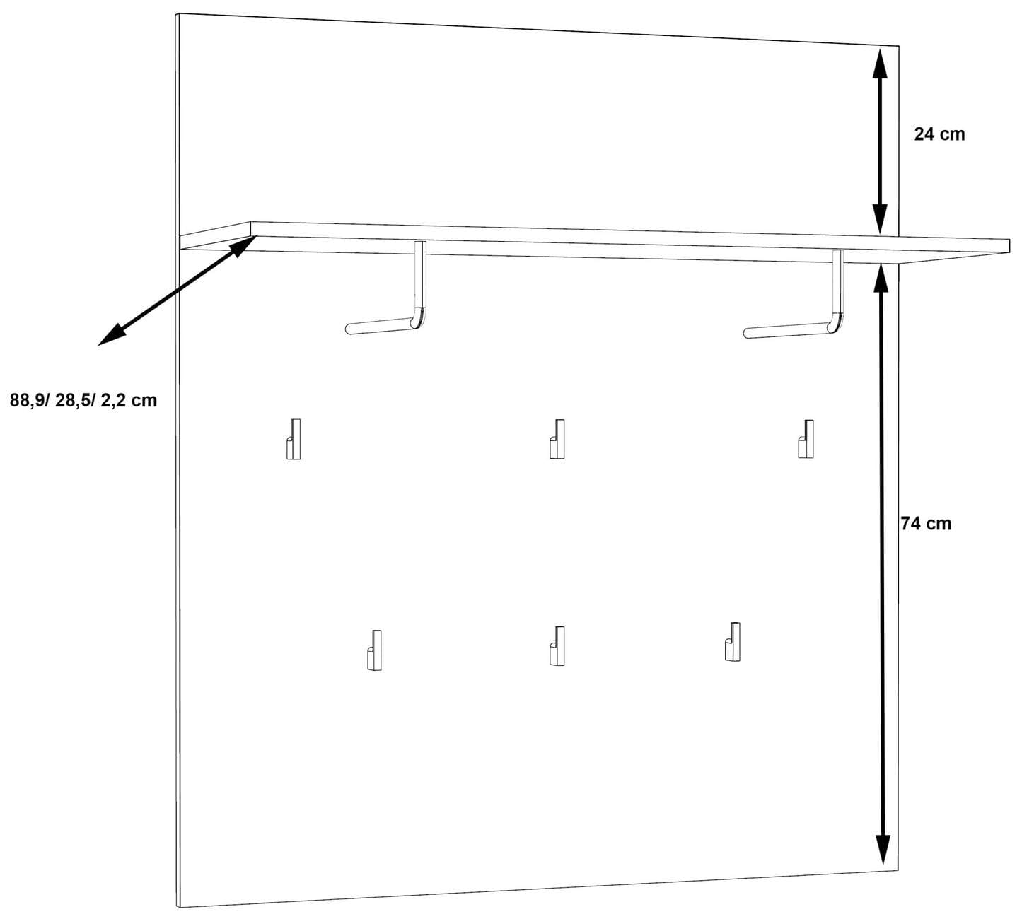 Garderobenpaneel TRONDHEIM mit 6 Haken Artisan Eiche Optik, von Forte