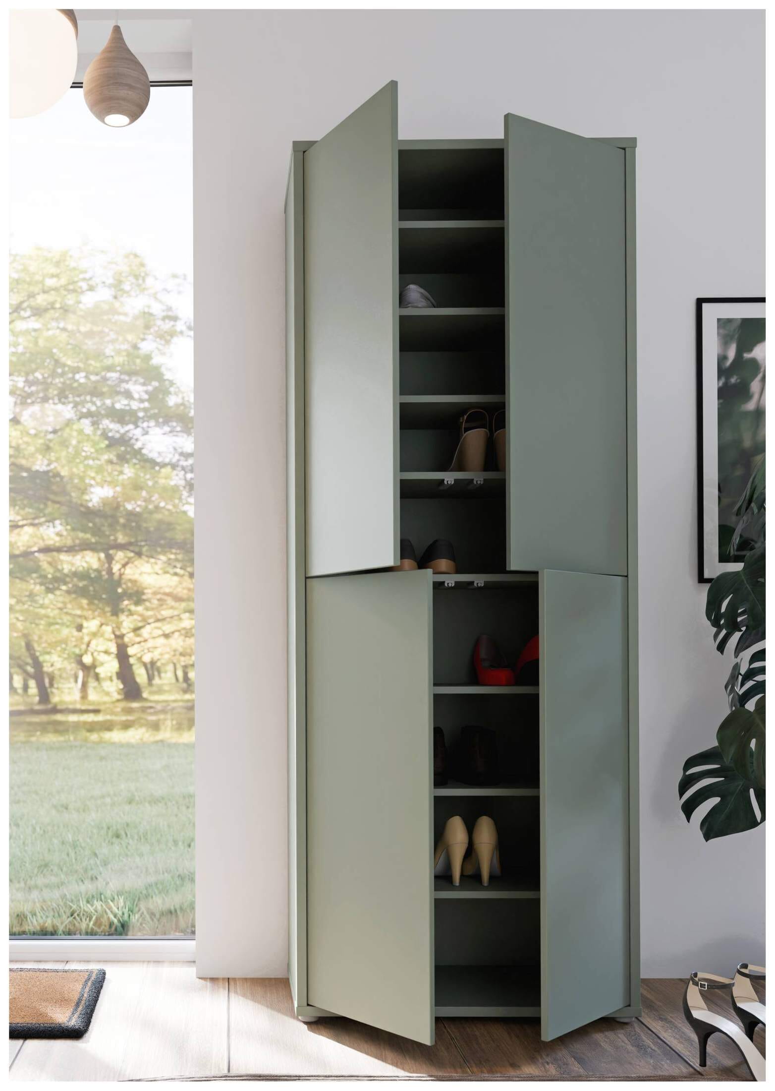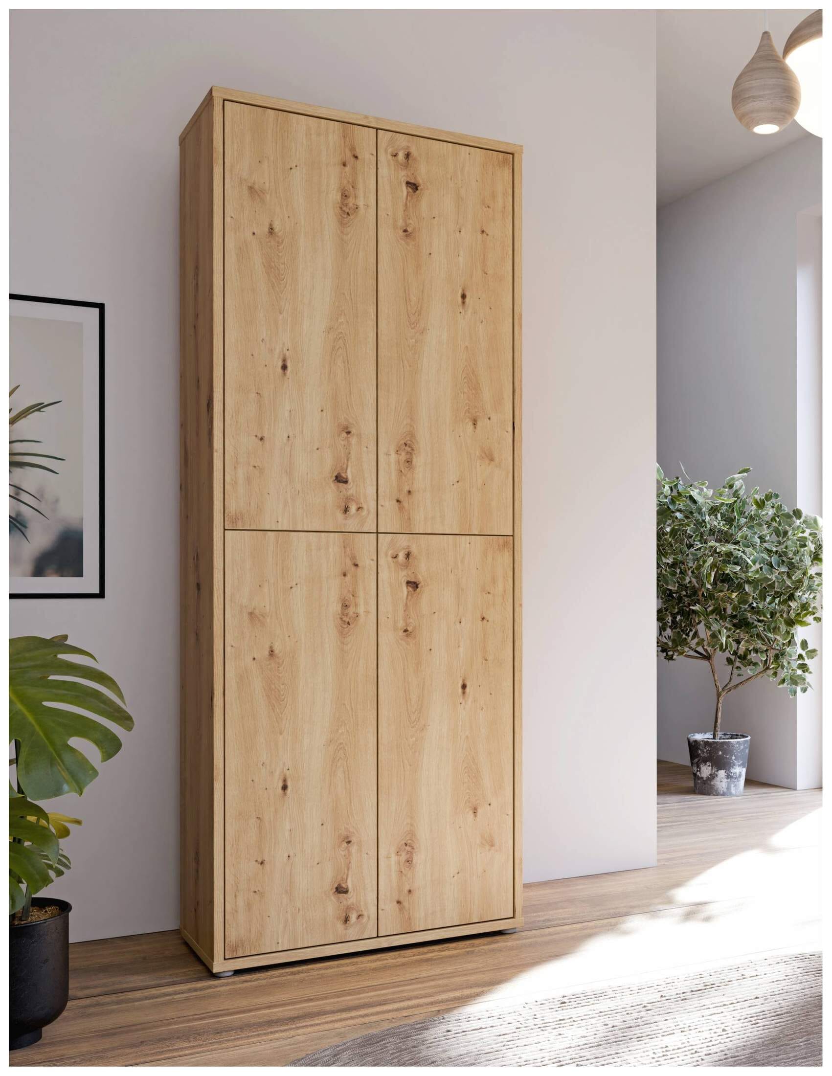Besonders gelungen sind die Türen, welche nicht wie normal geöffnet werden, sondern durch einen leichten Druck ein kleines bisschen aufspringen und dann geöffnet werden können. Gerade für schmale Räume und Mauernischen ist der Mehrzweckschrank ALICE SPRINGS eine sinnvolle Lösung. Räumen Sie überflüssige Sachen hinter die Türen vom Mehrzweckschrank ALICE SPRINGS und erfreuen Sie sich an einem wunderbar aufgeräumten Gefühl.