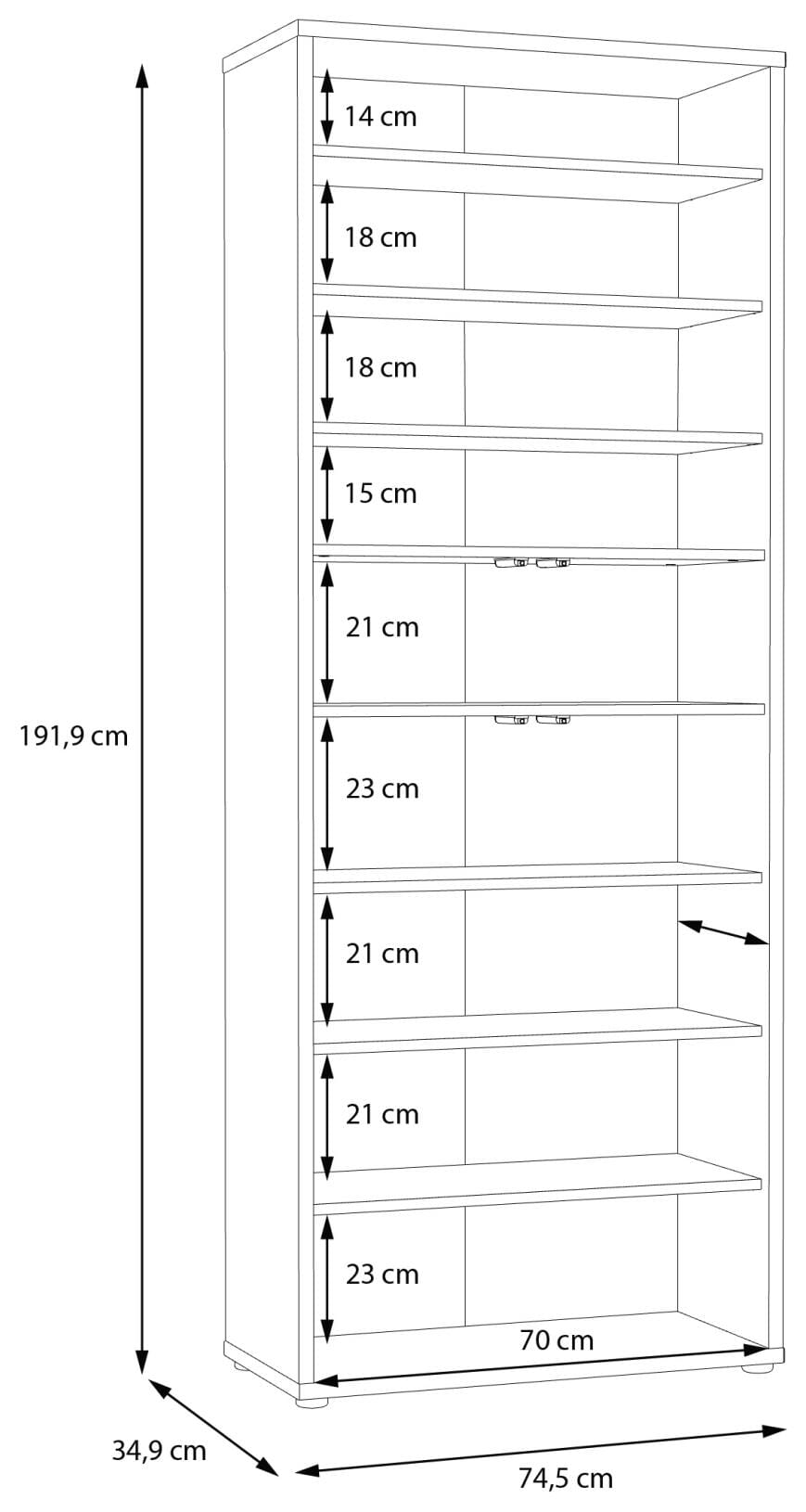 - Maße: B/H/T 74,5 x 191,9 x 34,9 cm