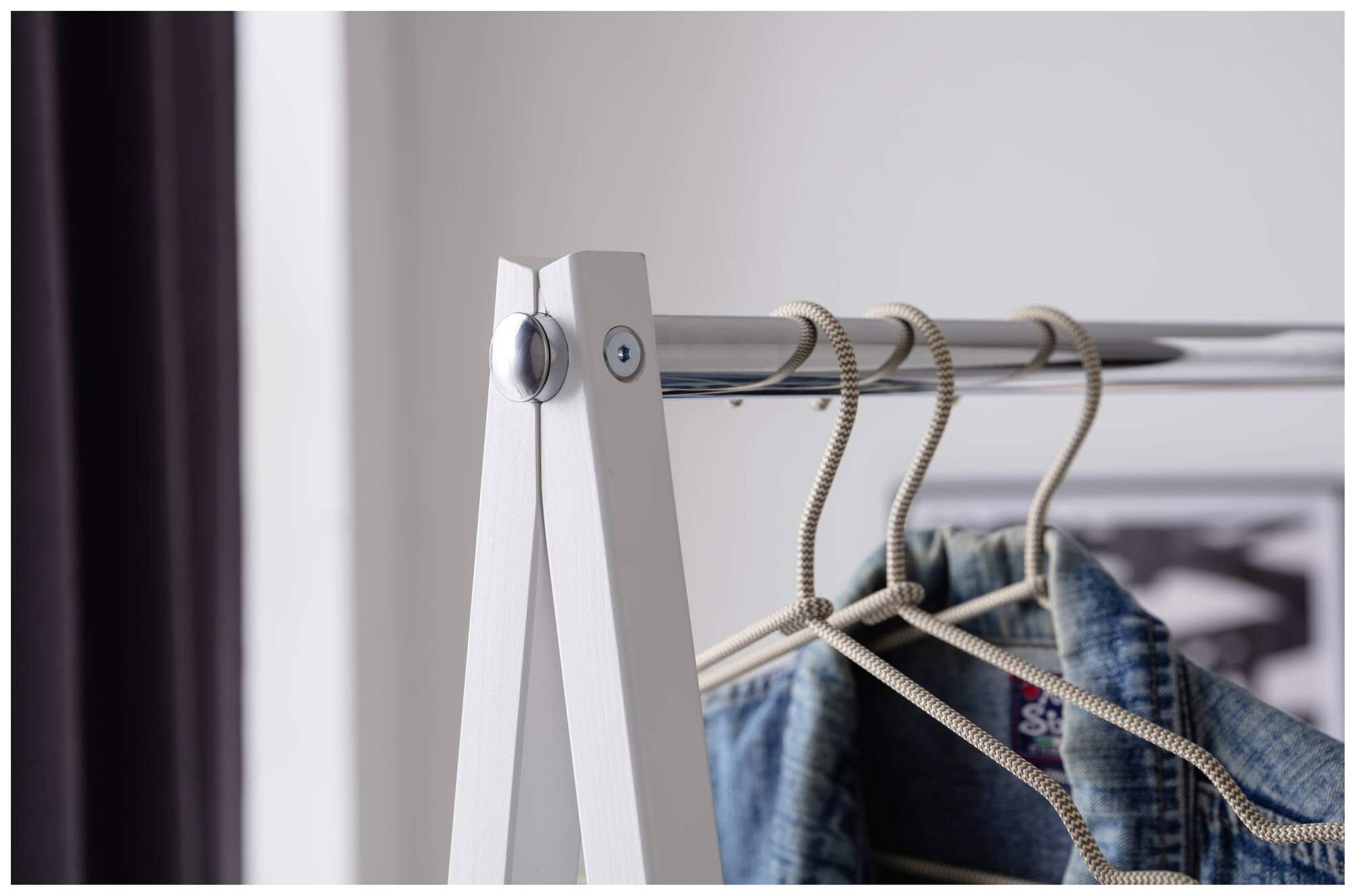 Garderobenständer ELNA 6 mit Spiegel Kleiderständer Holz Fichte Weiß