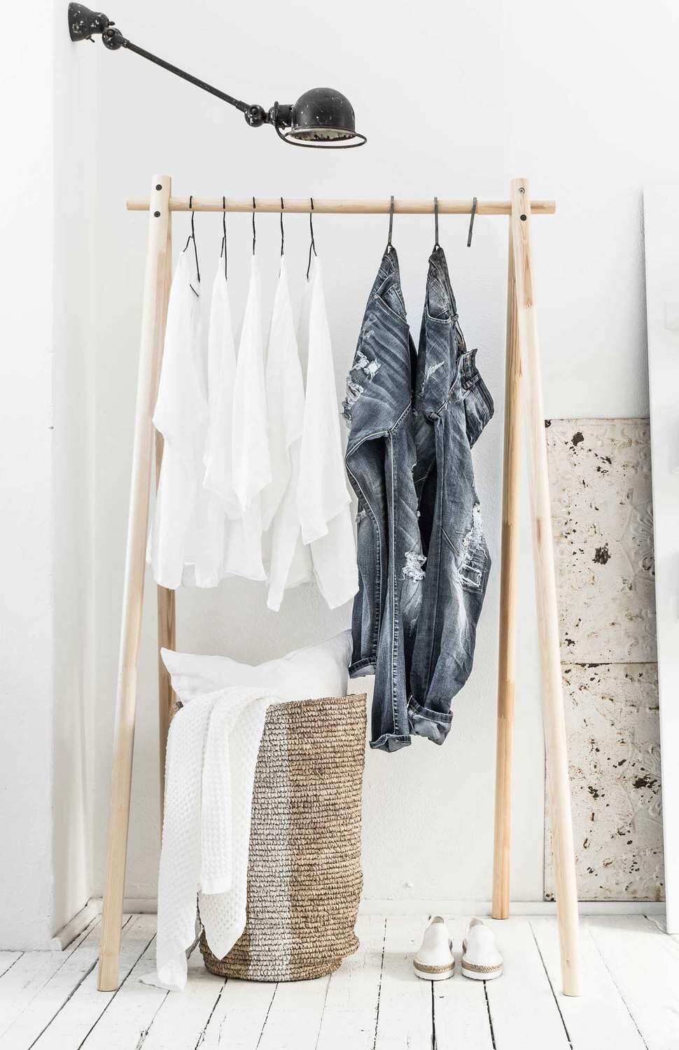 Das schöne helle Kiefernholz verleiht dem Kleiderständer eine nordische Klarheit und Frische. Durch seine kompakte Größe eignet er sich perfekt für Flure und Schlafzimmer und bietet dennoch genug Platz, um Ihre Lieblingskleidung auf schöne Weise zu präsentieren. Die schrägen Beine sorgen für einen stabilen Stand und setzen gleichzeitig ein trendiges Design-Statement.