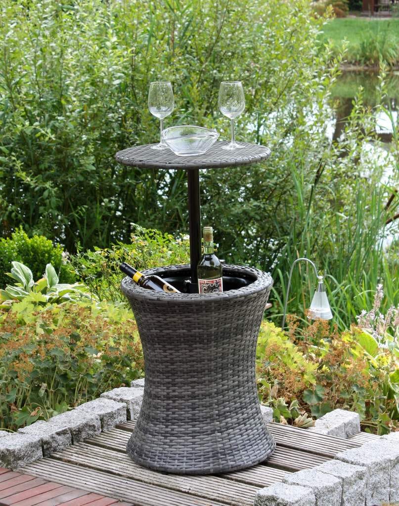 Der Hersteller nennt sich Garden Pleasure, und genau das wird mit diesem Produkt erzielt. Ein fertig montierter hoher Tisch gibt sich die Ehre in Ihrem Garten und hat noch einen Extragag parat: den Getränkekühler. Hinein mit Flaschen aller Arten, die werden schon leer. An diesem Tisch nimmt jede Gartenparty ihren guten Lauf. Und wenn Sie Mumbai danach reinigen wollen: Einfach kurz abwischen!