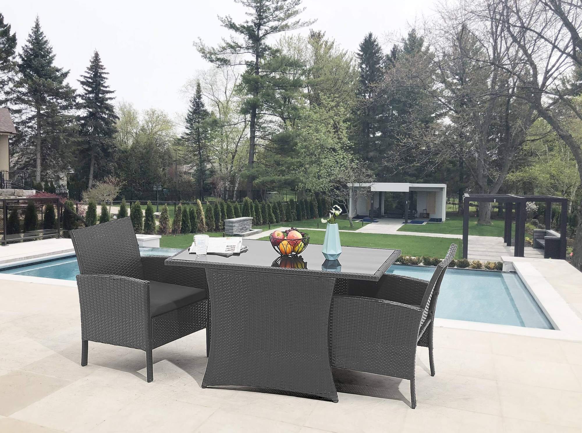 Garten Sitzgruppe Balkonset Polyrattan schwarz mit Tisch und Kissen