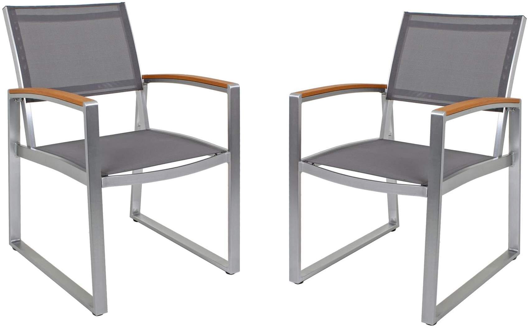 Der Garden Pleasure Gartenstuhl AVA überzeugt durch die geniale Materialkombination aus gebürstetem Aluminium, Kunststoffgewebe und Nonwood in Teak Optik. Dieser Mix sorgt für ein geringes Gewicht des Stuhls, der dennoch nicht die nötige Stabilität vermissen lässt. Gleichzeitig kann der Stuhl mit seinem modernen Design punkten, welches jede Terrasse oder jeden Garten aufwertet. Passende Tische finden Sie ebenfalls in unserem Shop.
