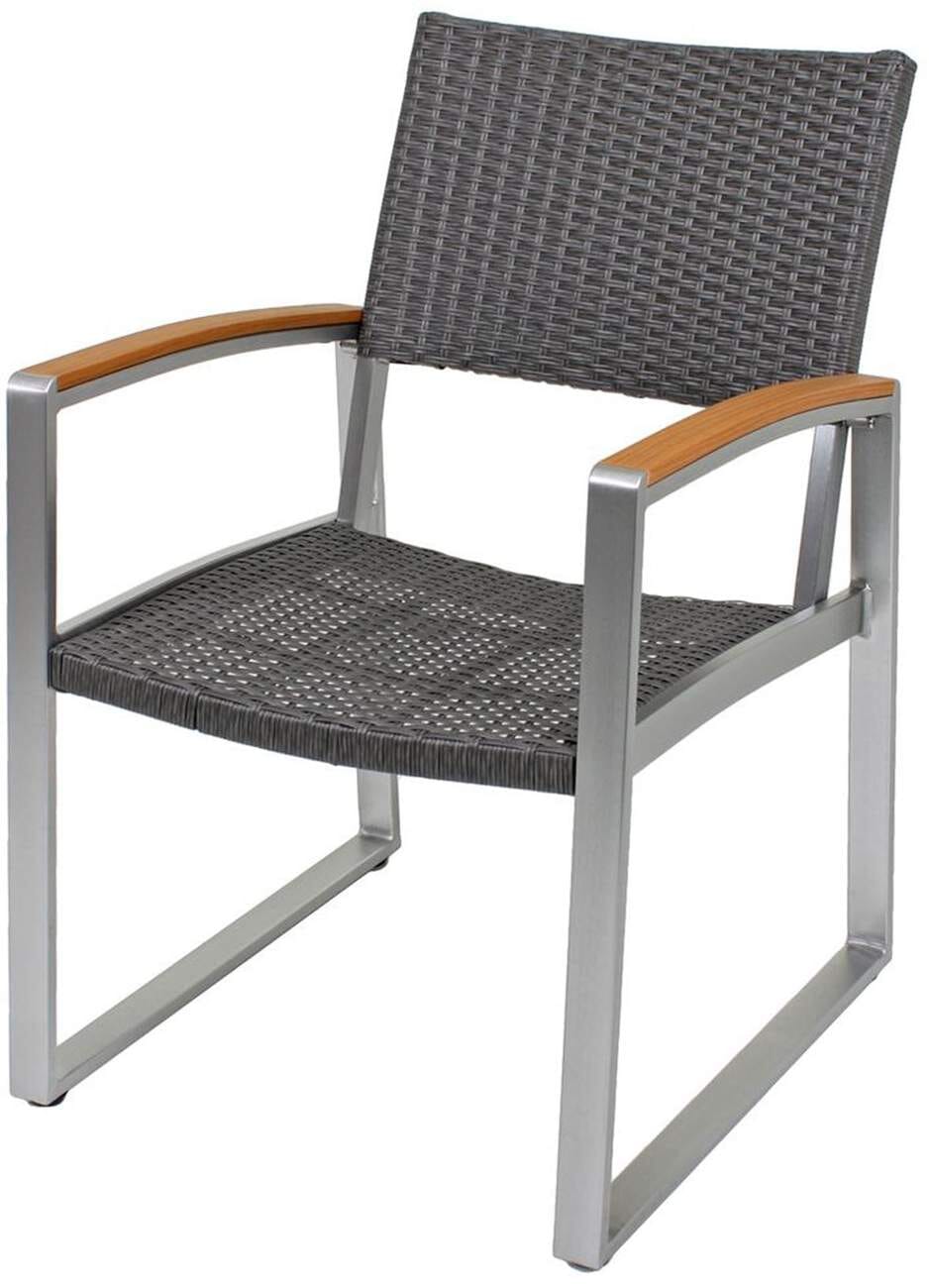 Der Garden Pleasure Gartenstuhl AVA überzeugt durch die geniale Materialkombination aus gebürstetem Aluminium, Polygeflecht und Nonwood in Teak Optik. Dieser Mix sorgt für ein geringes Gewicht des Stuhls, der dennoch nicht die nötige Stabilität vermissen lässt. Gleichzeitig kann der Stuhl mit seinem modernen Design punkten, welches jede Terrasse oder jeden Garten aufwertet. Passende Tische finden Sie ebenfalls in unserem Shop.