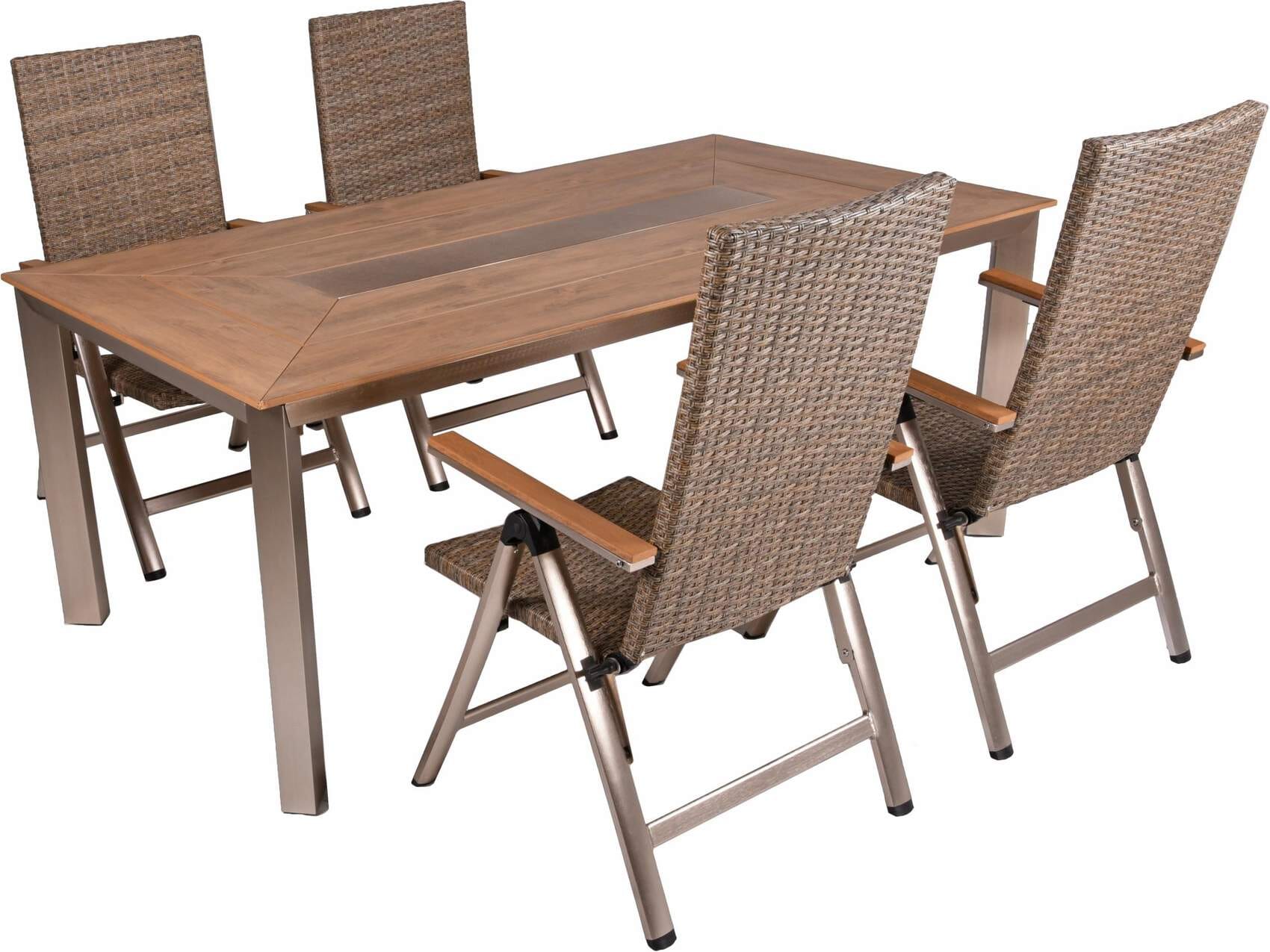 Garten Tischgruppe FLORENCE 5-tlg. mit Tisch und 4 × Hochlehner in Aluminium und Teak-Optik