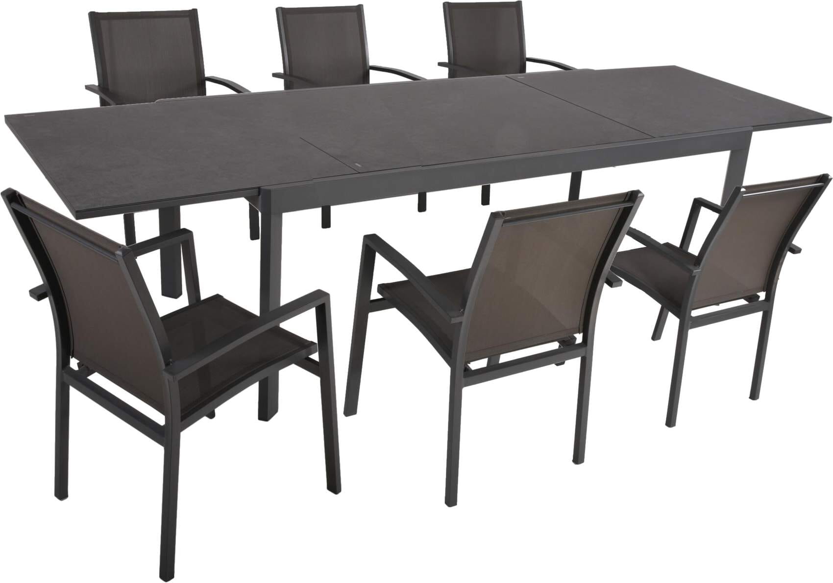 Garten Tischgruppe NEREA 7-tlg. Ausziehtisch und 6 × Stapelstuhl ELENA