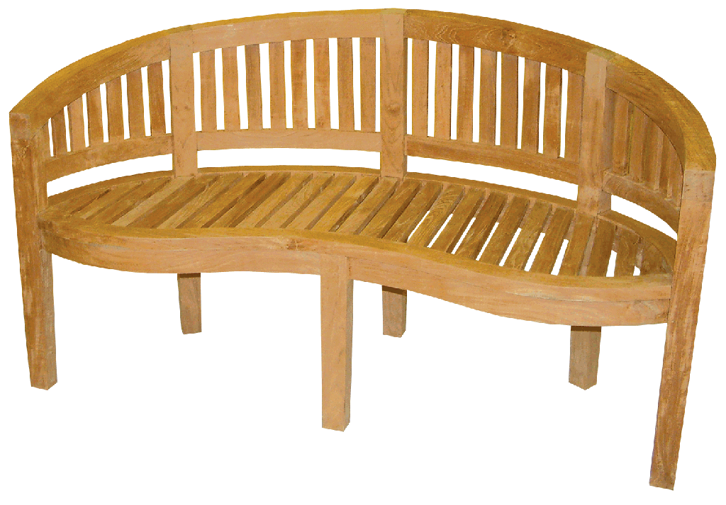 die schön gearbeitete Bananenbank aus massivem Teakholz ist ein Blickfang in jedem Garten oder Terasse.