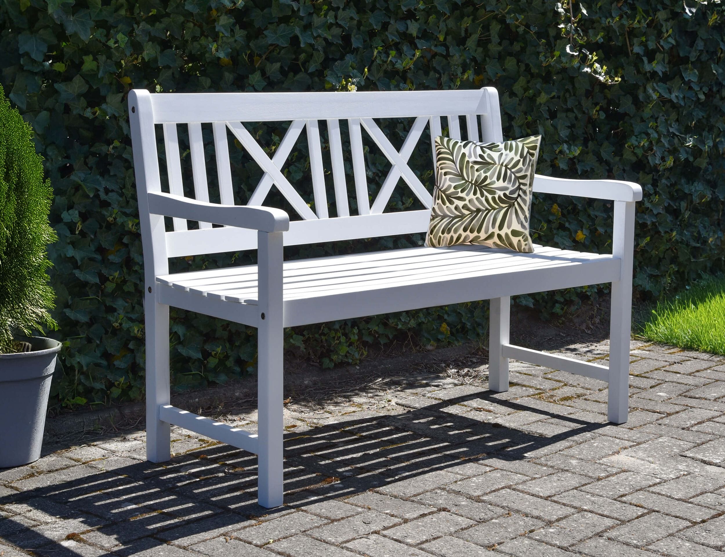 Eine weiße Gartenbank ist eine stilvolle und zeitlose Ergänzung für jeden Außenbereich. Besonders die Gartenbank Malmö 2-sitzig weiß mit Armlehne ist ein wahrer Blickfang und verleiht Ihrem Garten eine elegante Note.