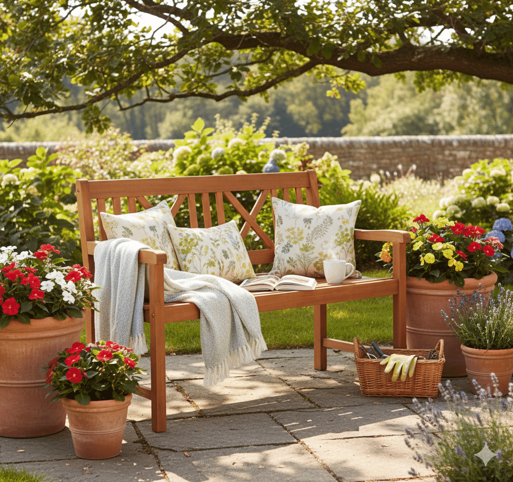 Gartenbänke sind herrliche Oasen der Ruhe und Entspannung.