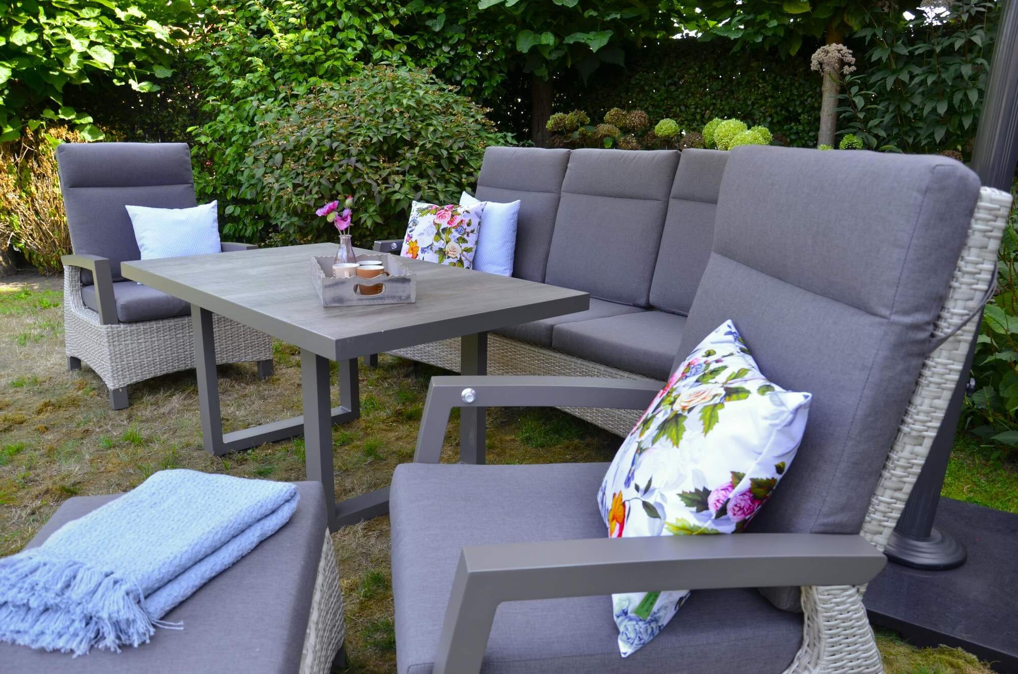 Prato Gartenmöbel sind eine schöne Serie von Lesli Living die alles für eine gemütliche Gartenzeit beinhaltet, es gibt passende Liegen, Sessel, Lounge Sessel, Hocker eine Eckbank und sogar einen höhenverstellbaren Tisch, und das in den 3 Farben Prato, Brick und Mountain.