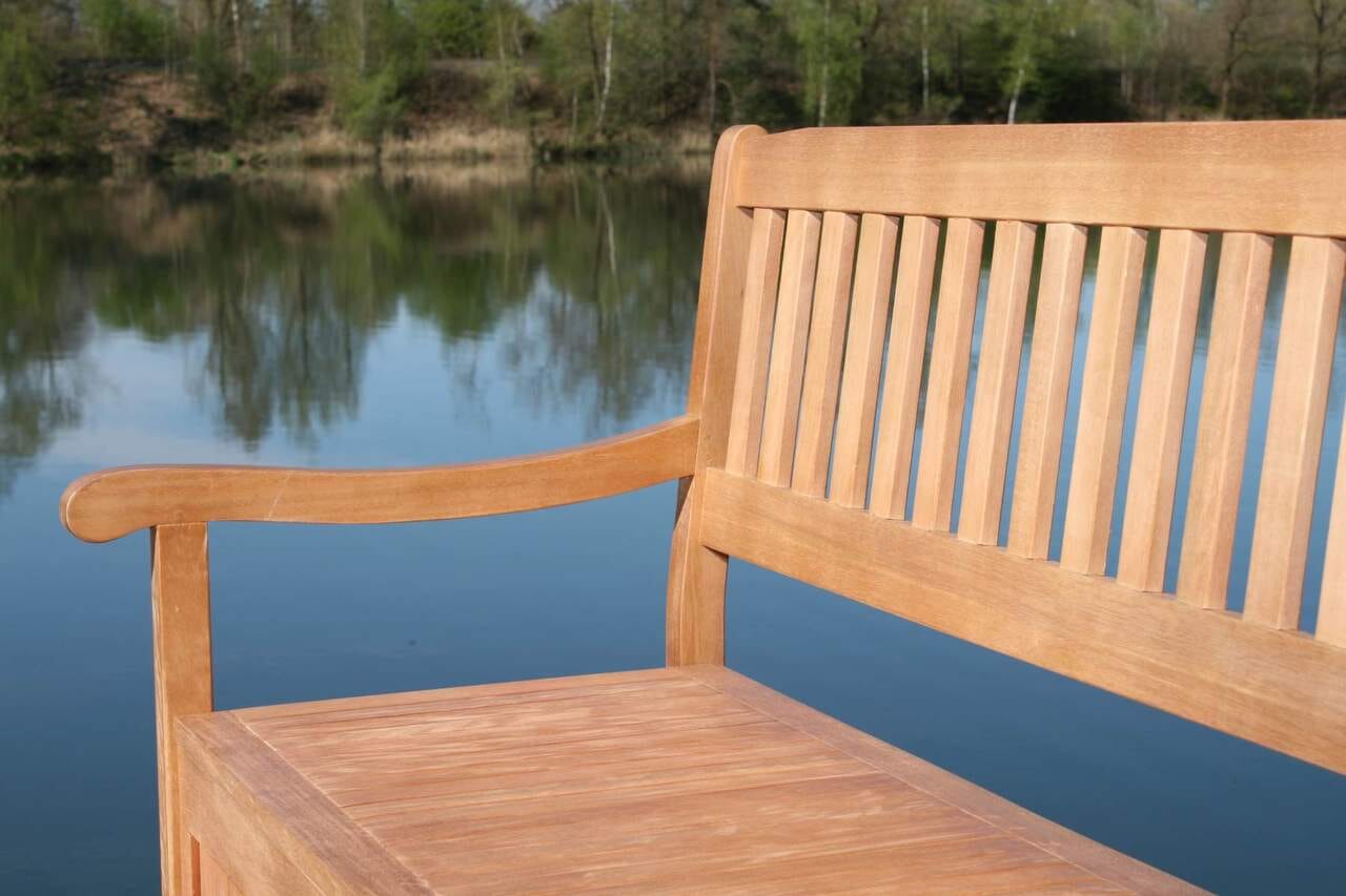 schöne 4-Siter Gartenbank mit Truhe aus Eukalyptus (Eucalyptus grandis)