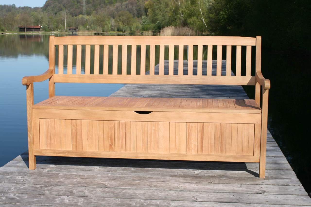 Gartenbank mit viel Stauraum für Alles was am Abend nicht im Garten liegen bleiben soll.