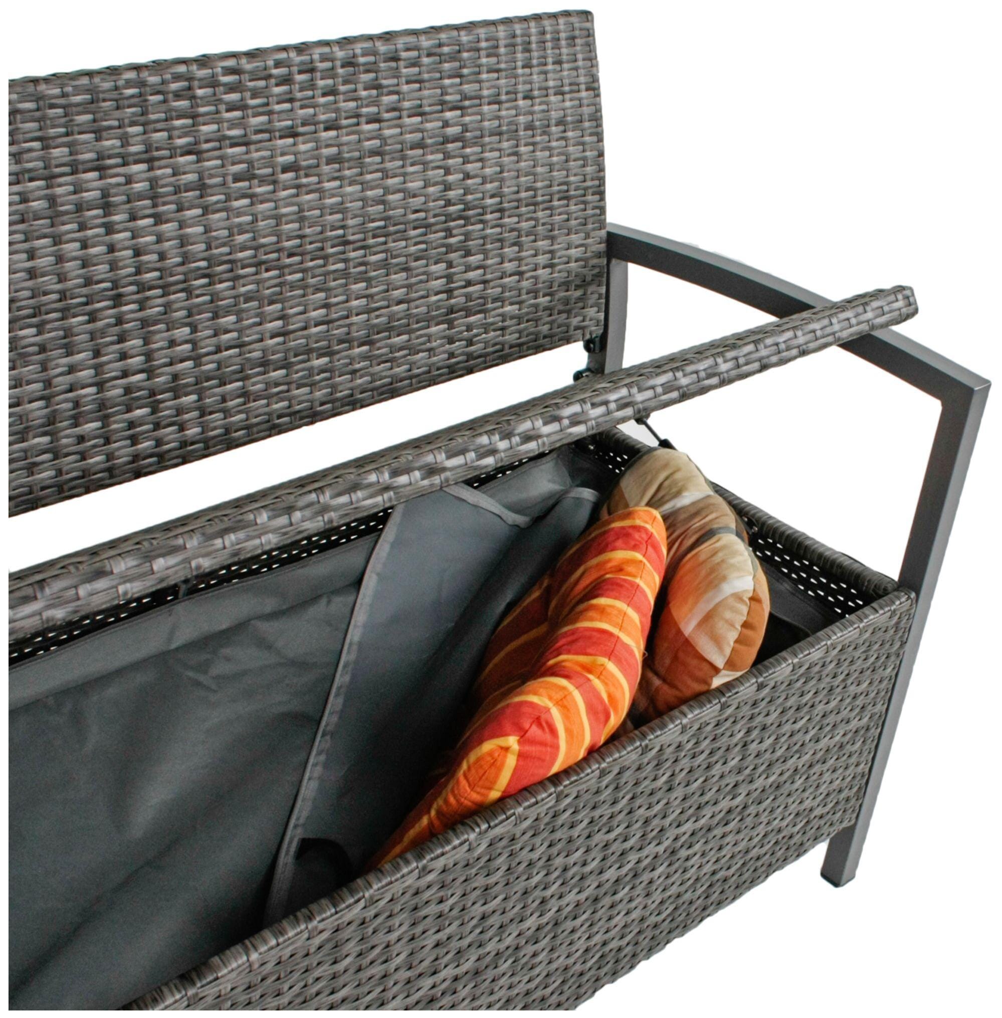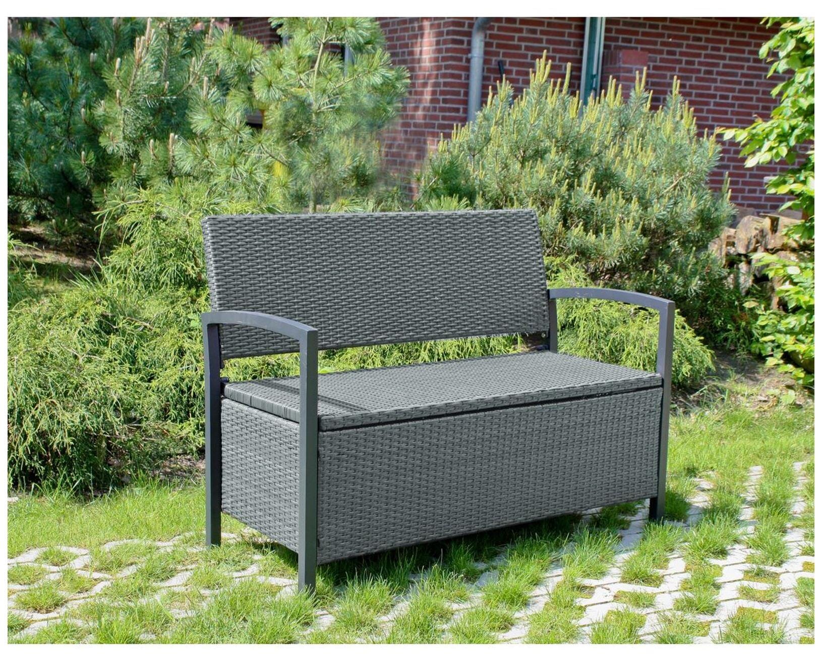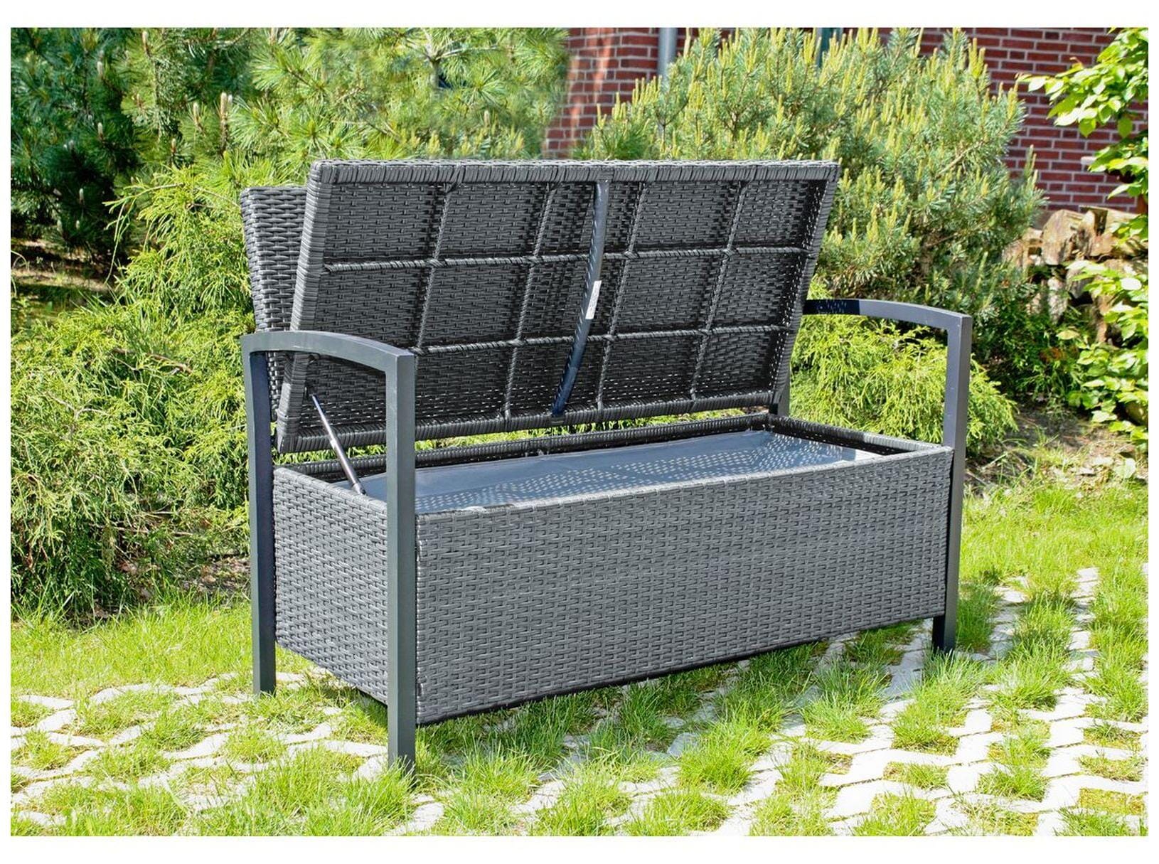 Gartenbank Truhenbank FERRARA Aluminium und Polygeflecht Dunkelgrau
