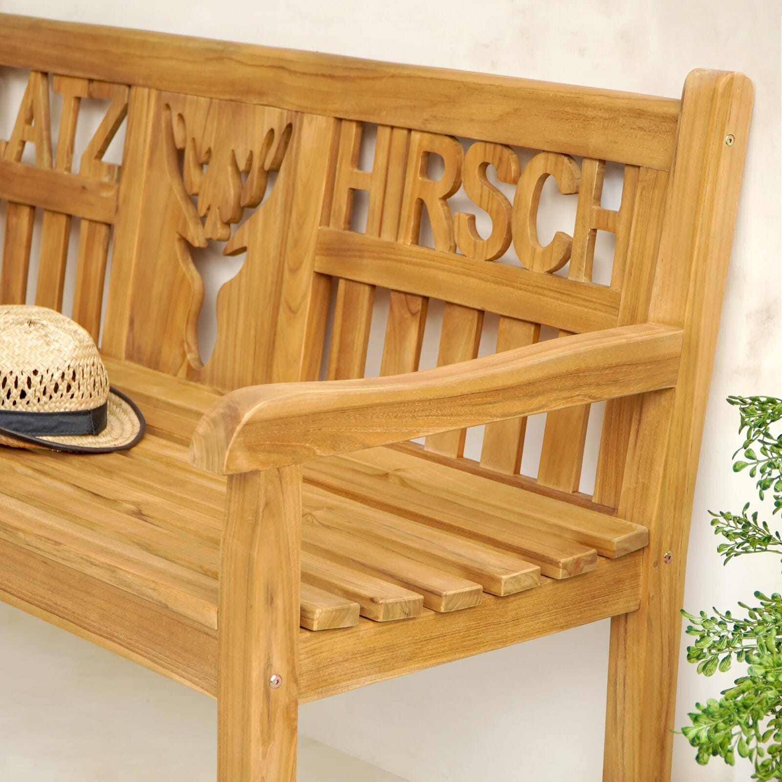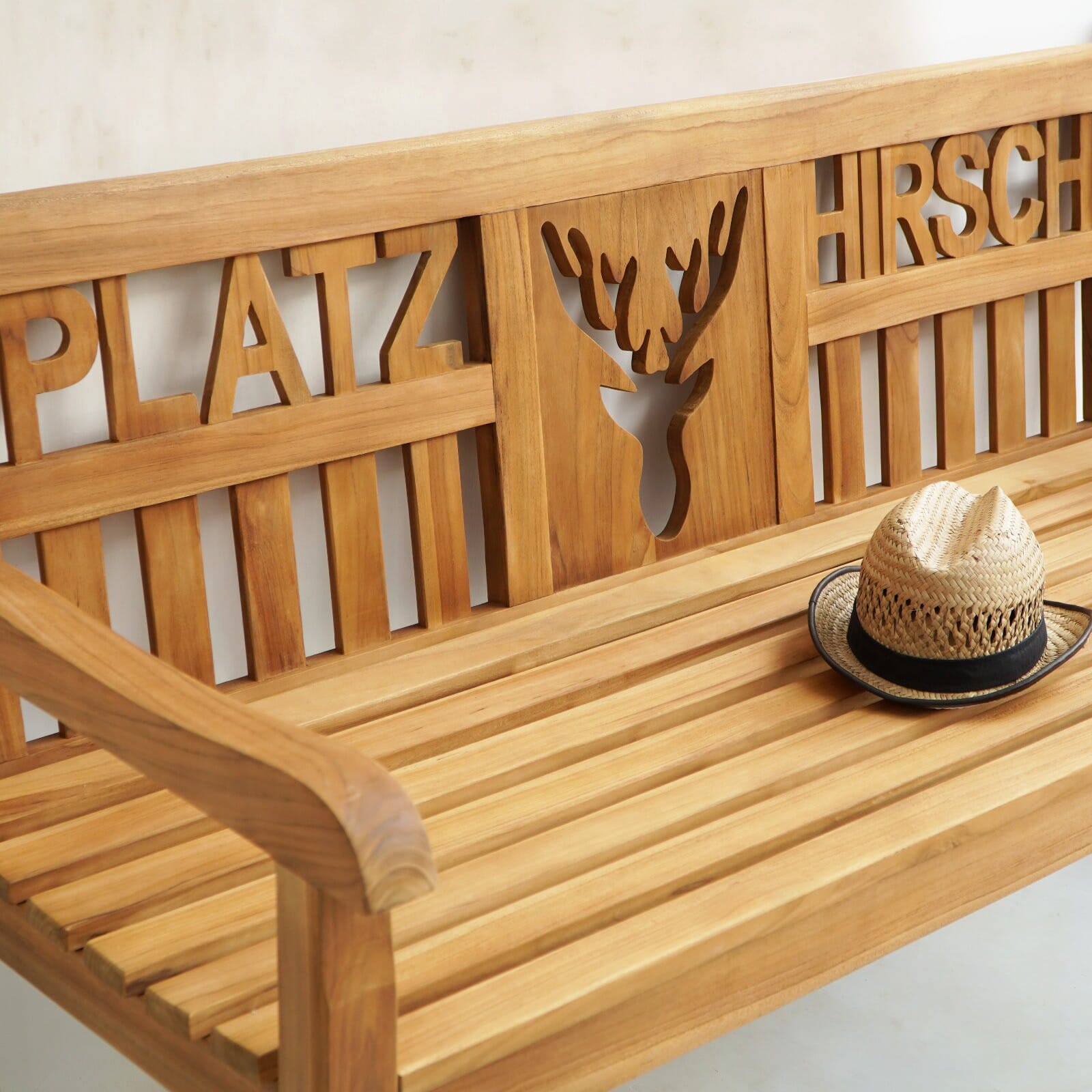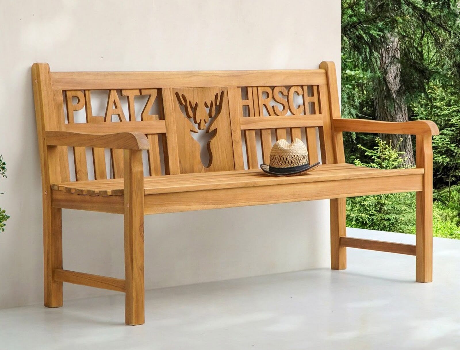 Teak Gartenbank PLATZHIRSCH – Wer hier sitzt, hat das Sagen!