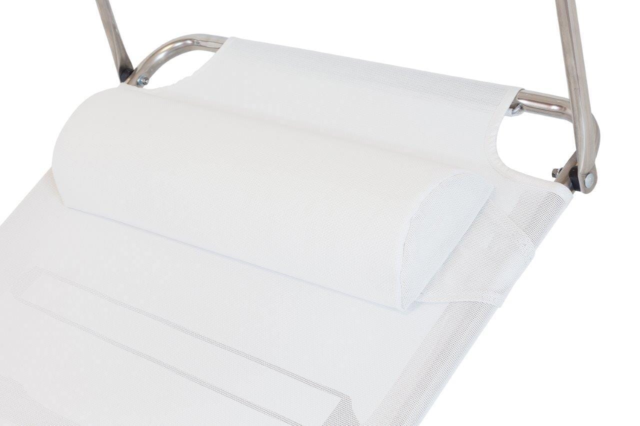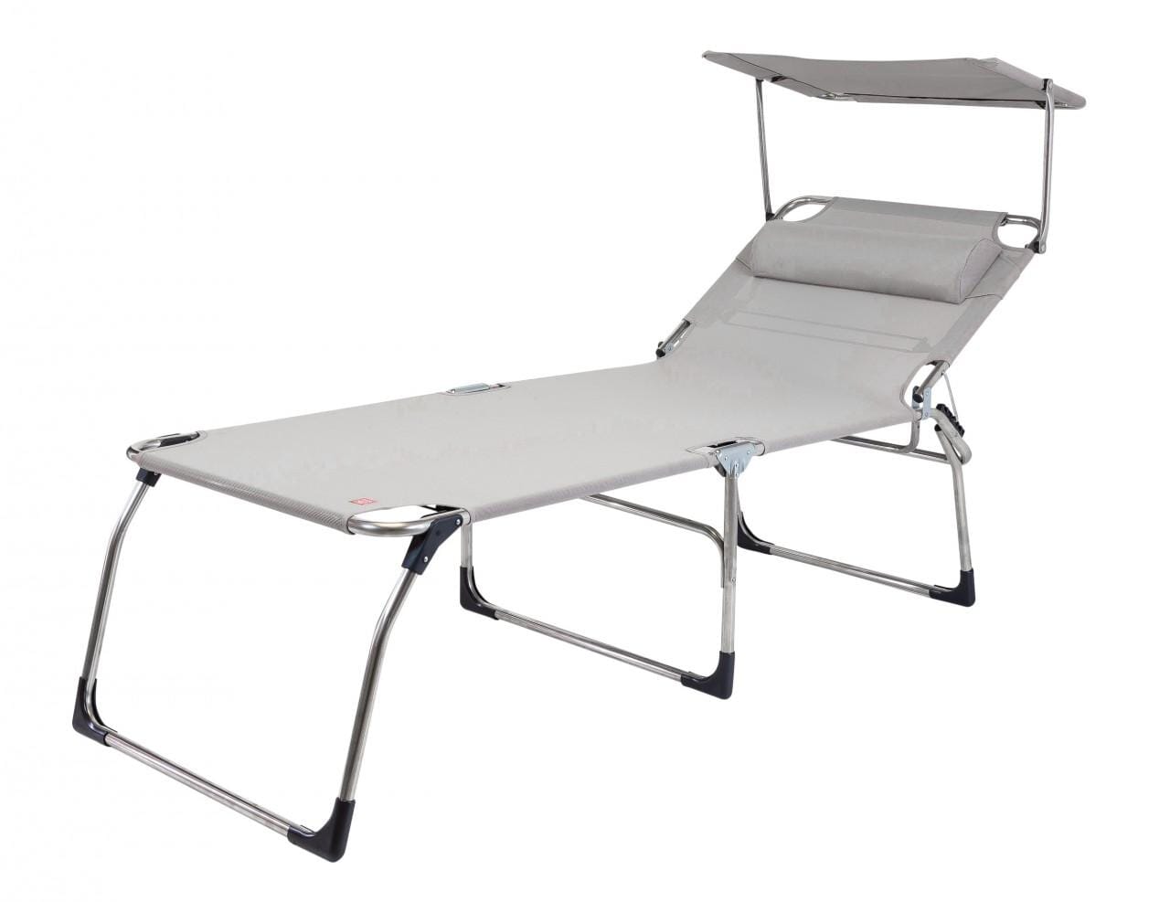 Das Gestell der Klappliege besteht aus Aluminiumrohr mit 25 mm Durchmesser, der Bezug ist aus strapazierfähigen, wetterfesten und UV-beständigen Textilene.