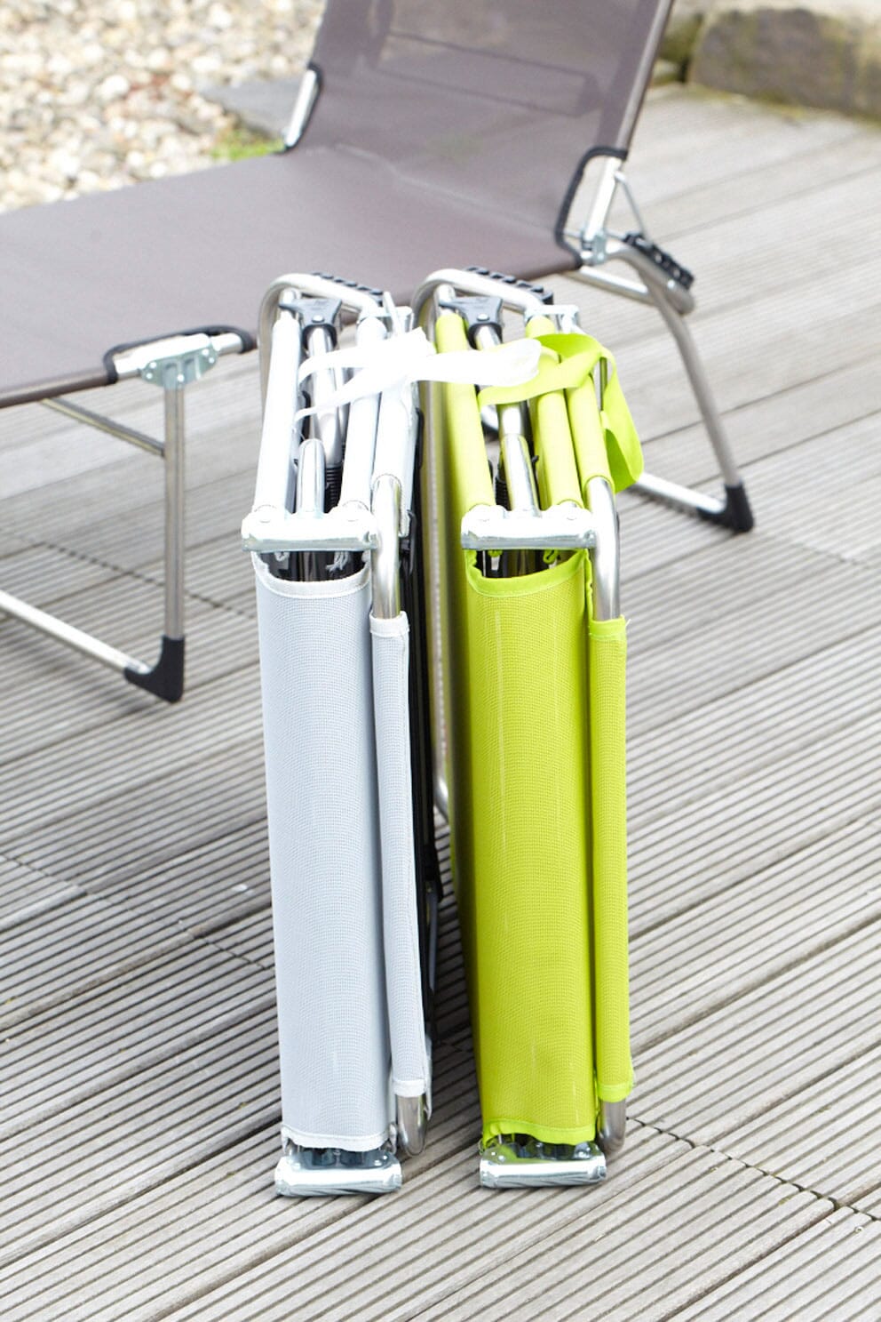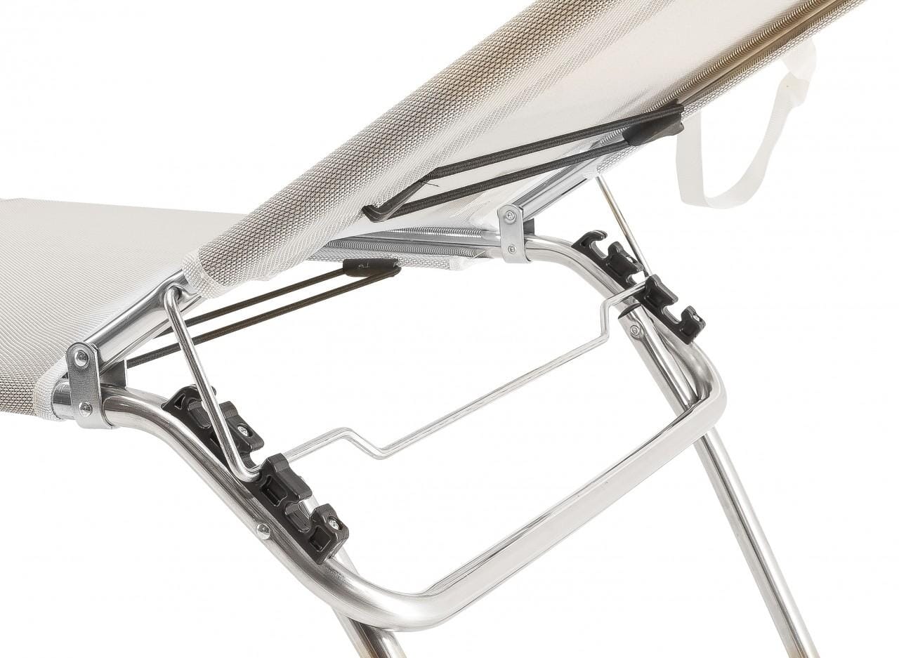 Der Bezug besteht aus strapazierfähigen, wetterfesten und UV-beständigen Textilene. Die Bespannung ist allerdings nicht nur pflegeleicht und robust, sondern passt sich zudem den Körperkonturen an und bietet einen hohen Komfort. Komfortabel sind außerdem die besondere Liegehöhe von 42cm und die 3-fach verstellbare Rückenlehne, die auch fast waagerecht gestellt werden kann.