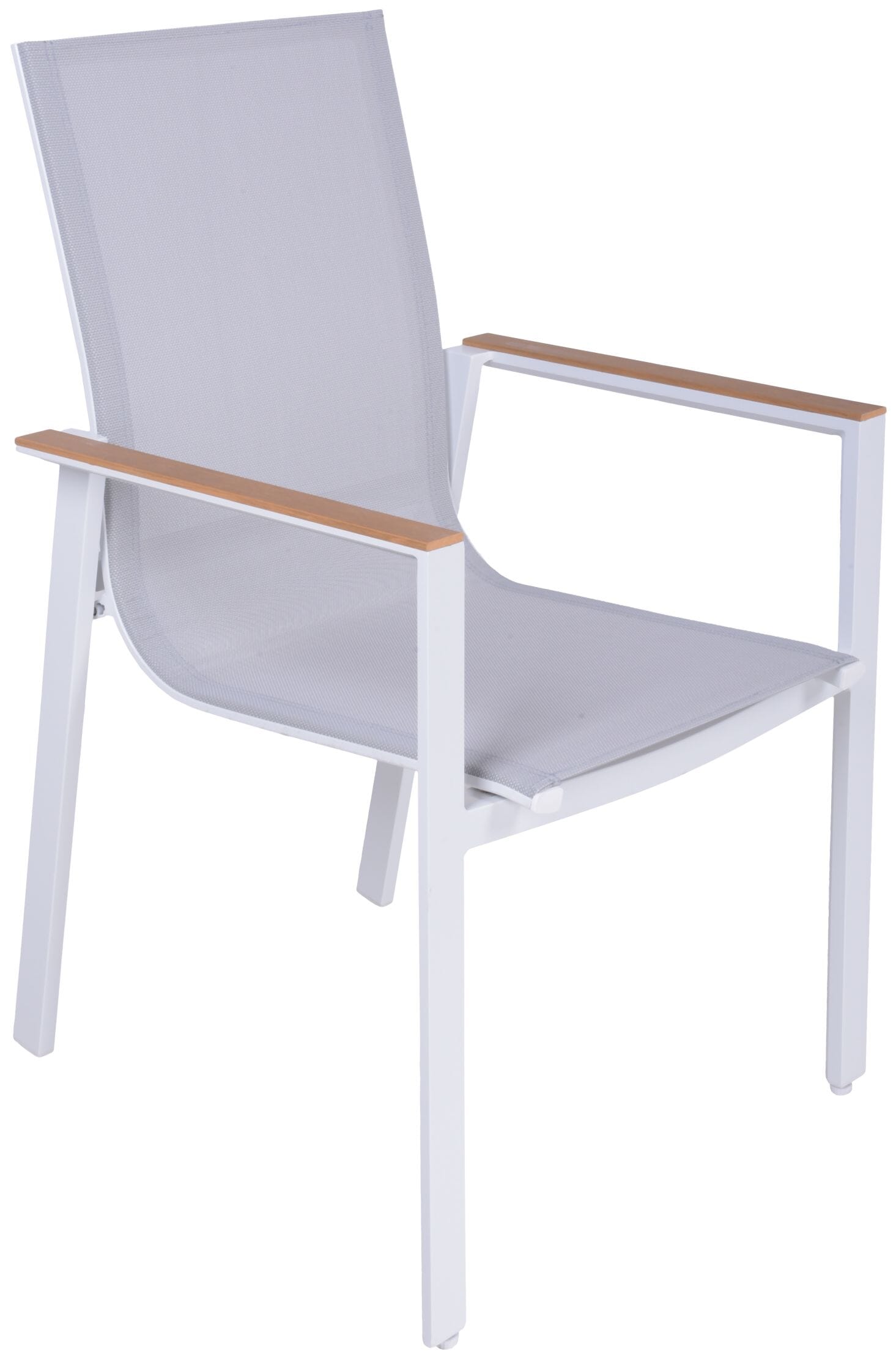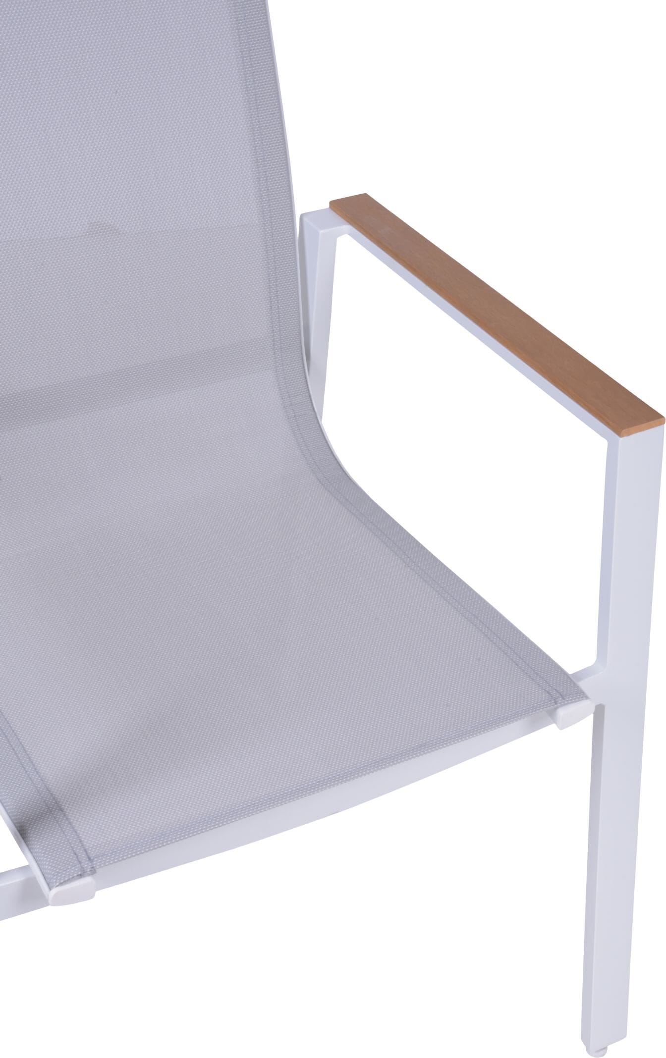 Hergestellt aus robustem Aluminium und mit einem strapazierfähigen Polyesterbezug in elegantem Weiß, bietet dieser Stuhl eine langlebige Konstruktion und eine zeitgemäße Optik, die Ihr Outdoor-Bereich bereichern wird.