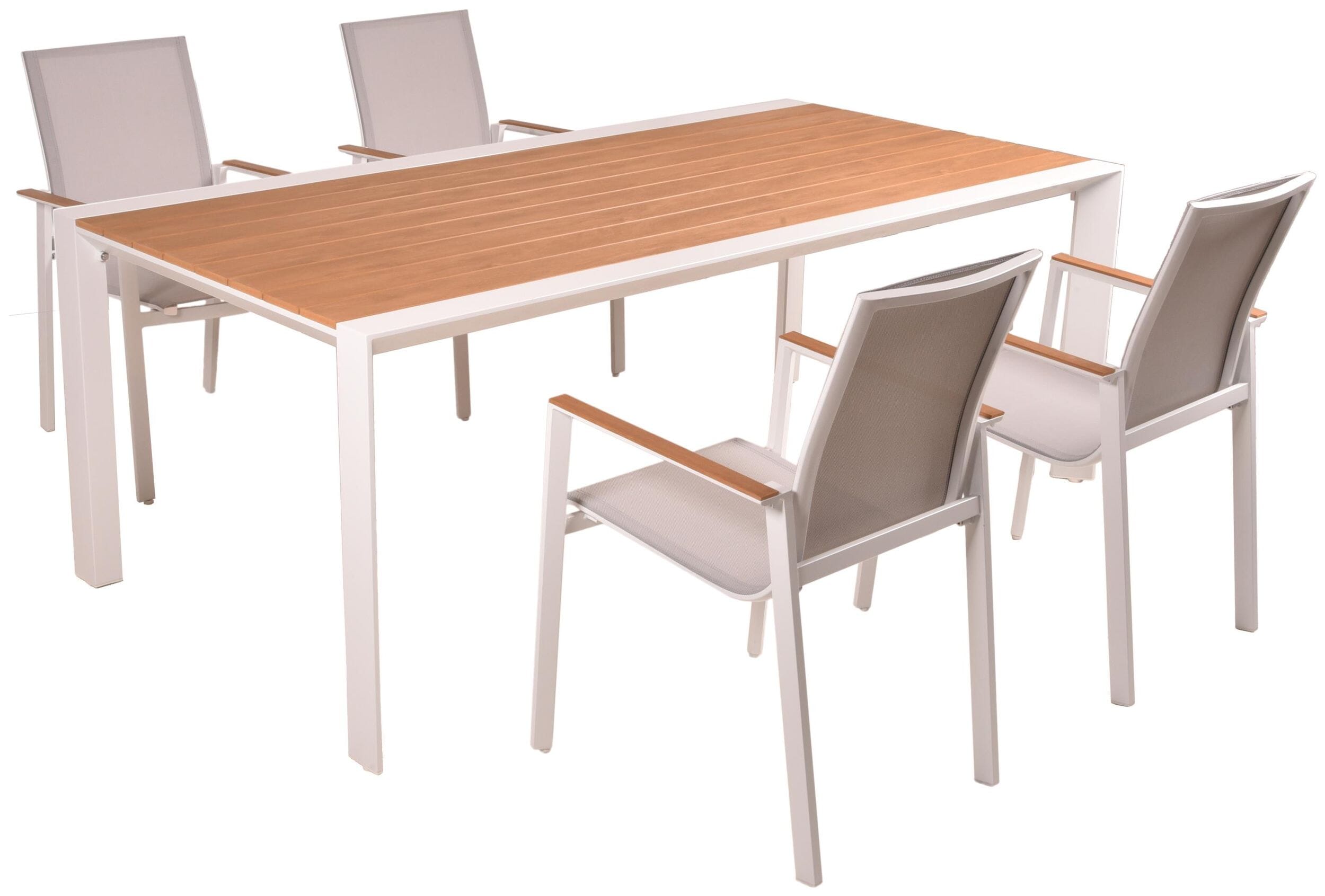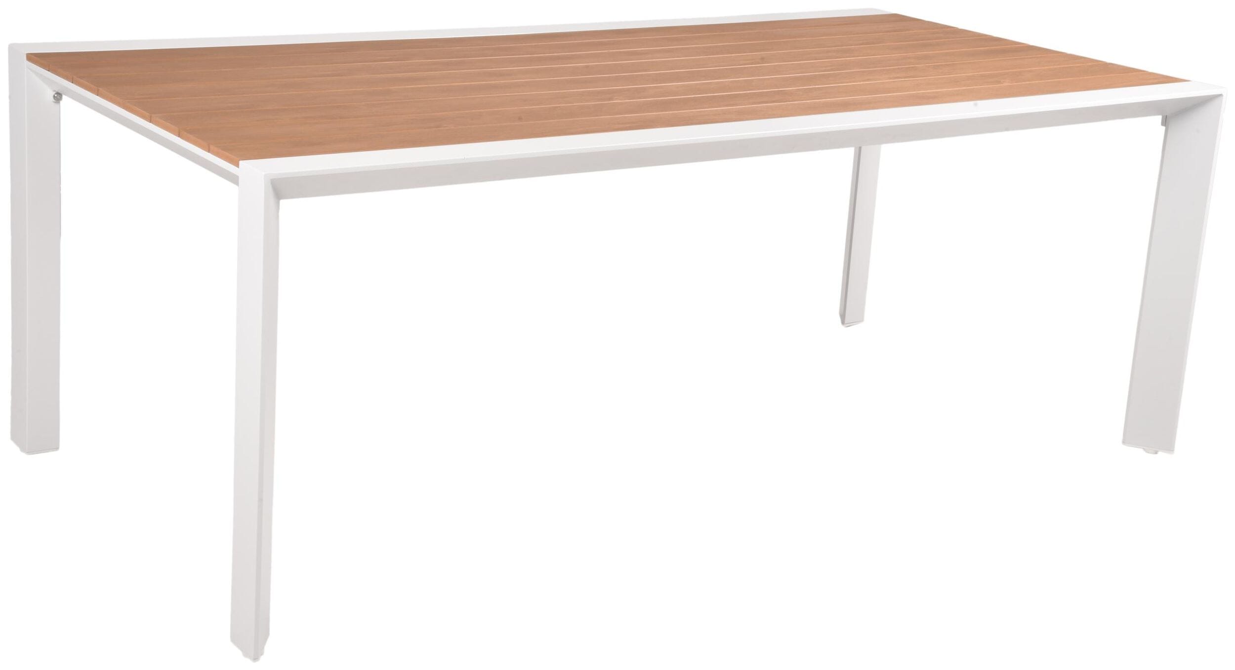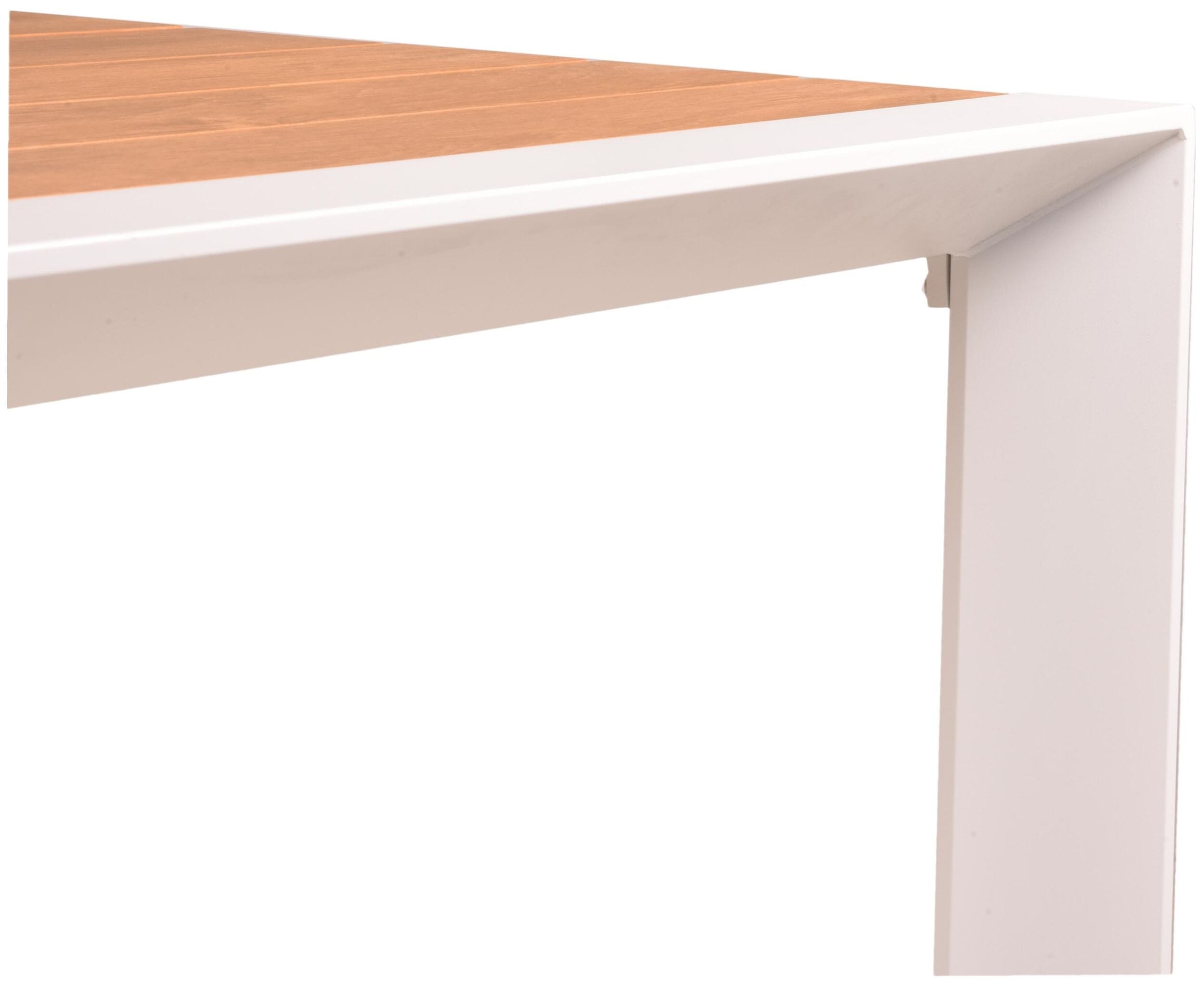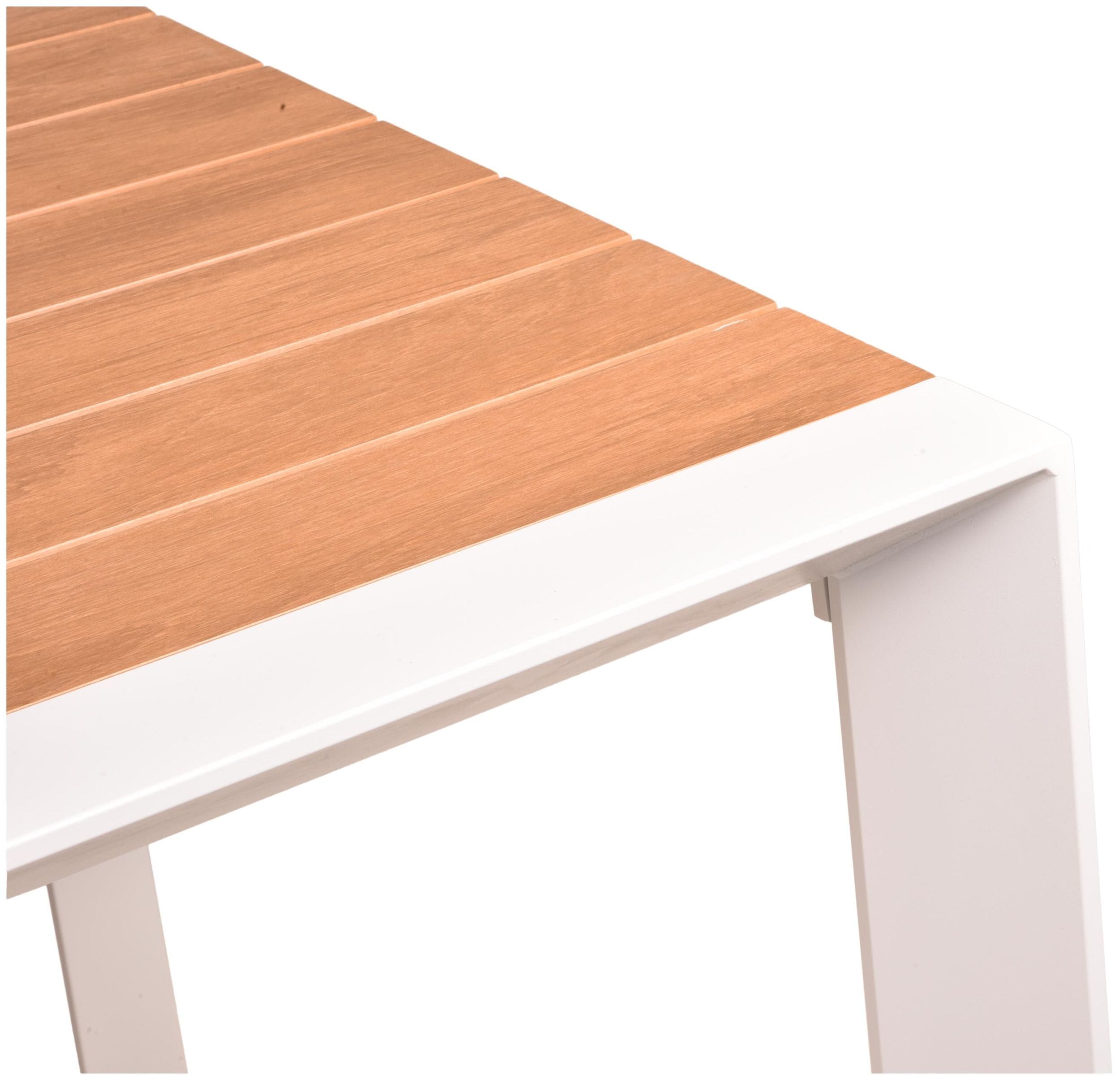 Mit seiner Kombination aus pulverbeschichtetem weißem Aluminium und einer Tischplatte aus natürlichem Nonwood setzt dieser Tisch ein modernes Statement in Ihrem Garten.