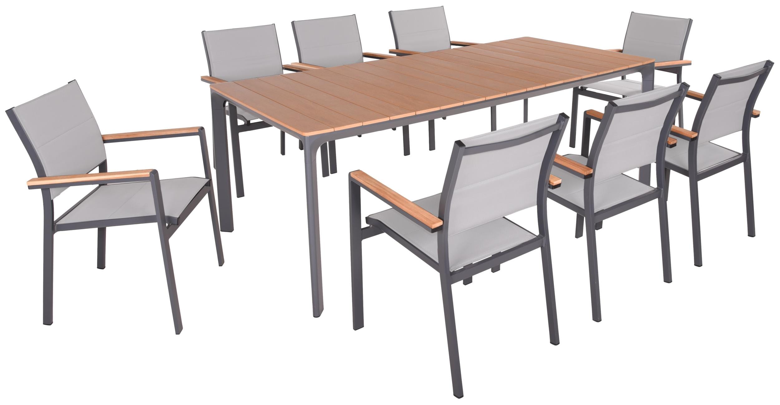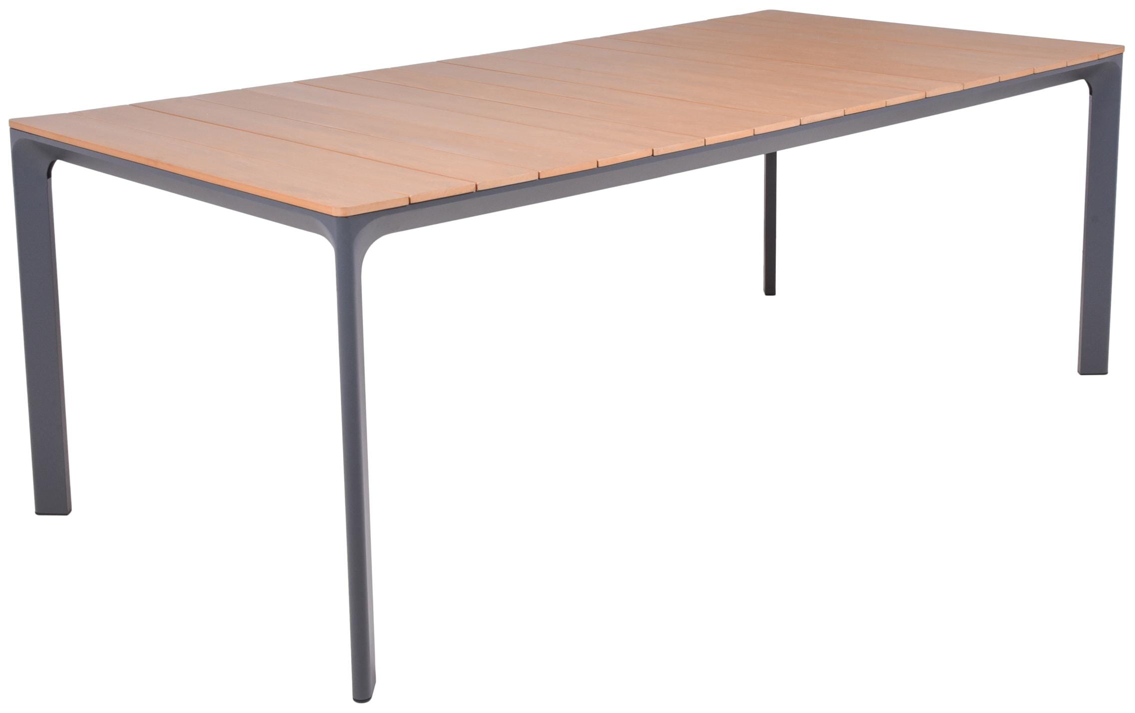 Dieser Gartentisch SILEA ist mehr als nur ein einfacher Tisch. Hergestellt aus hochwertigem pulverbeschichtetem anthrazit Aluminium, überzeugt er nicht nur durch seine Robustheit, sondern auch durch seine Wetterbeständigkeit und Langlebigkeit. Die Tischplatte aus natürlichem Nonwood verleiht diesem Tisch eine warme und natürliche Optik, die Ihren Garten in ein wahres Paradies verwandelt.