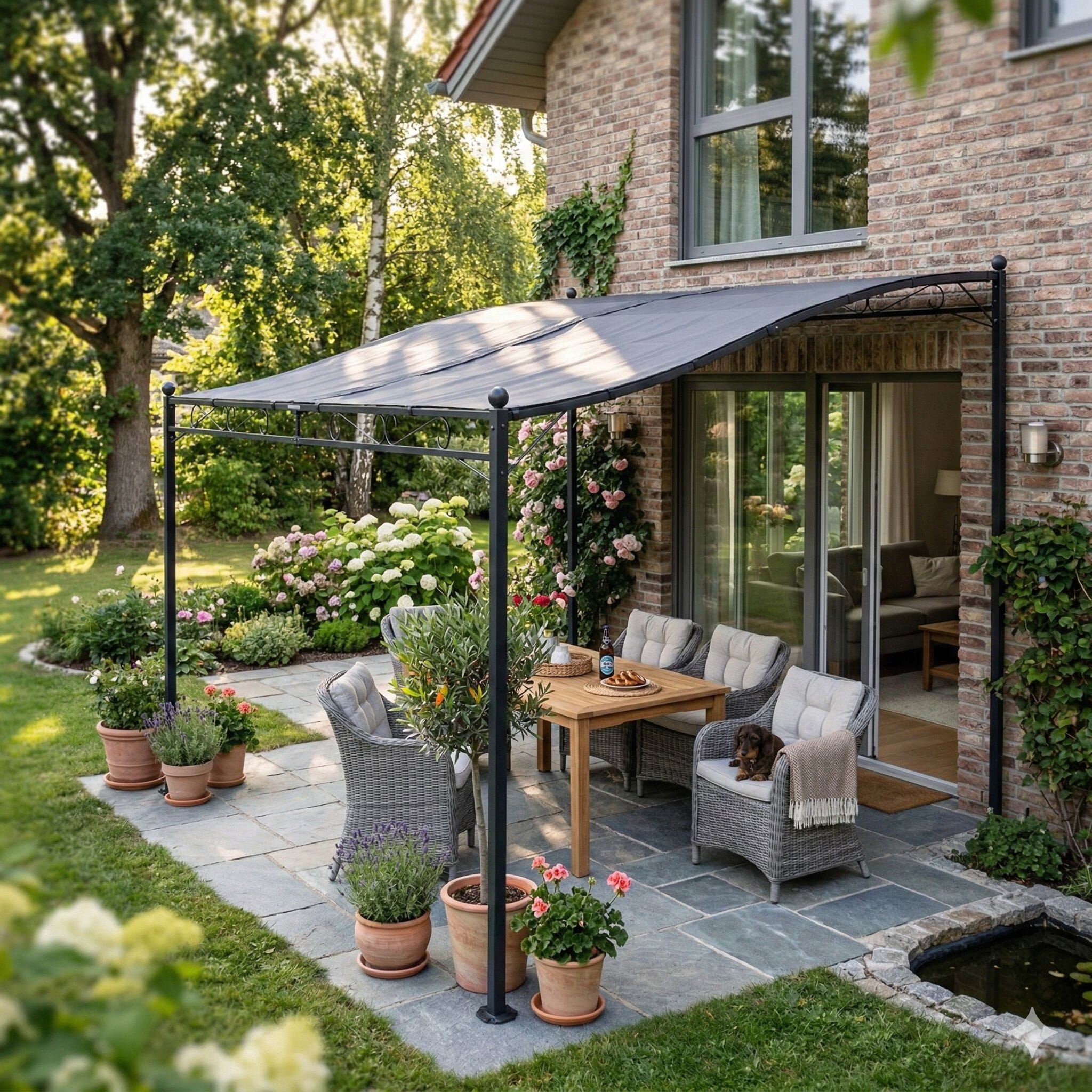 Verwandeln Sie Ihre Terrasse oder Ihren Garten in eine elegante Wohlfühloase! Mit diesem Anbaupavillon genießen Sie sonnige Tage entspannt im Schatten. Egal ob für die nächste Gartenparty, als schützendes Vordach oder als edle Überdachung für Ihre Terrassenmöbel – diese Pergola schützt Sie zuverlässig vor Sonnenstrahlen und setzt zugleich einen stilvollen Akzent in Ihrem Außenbereich.
